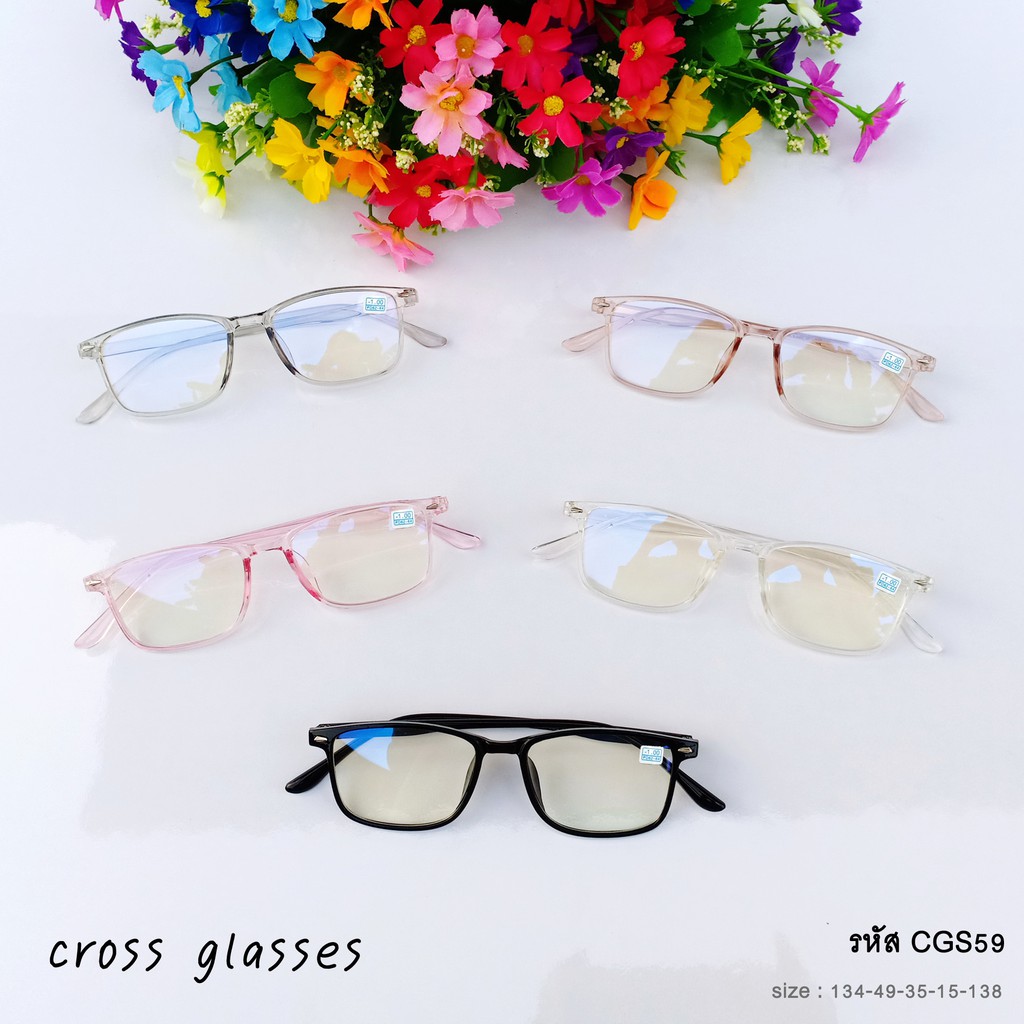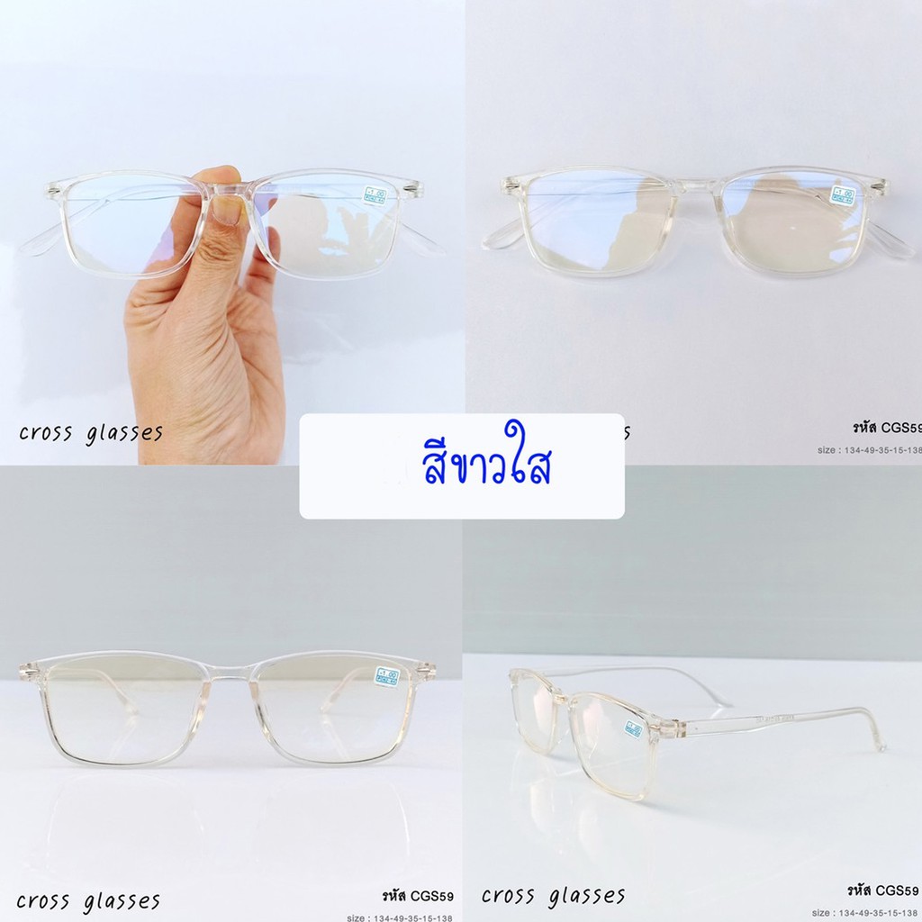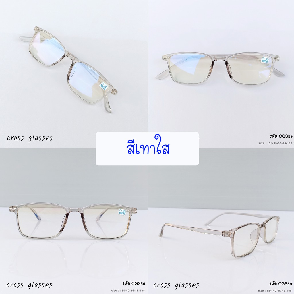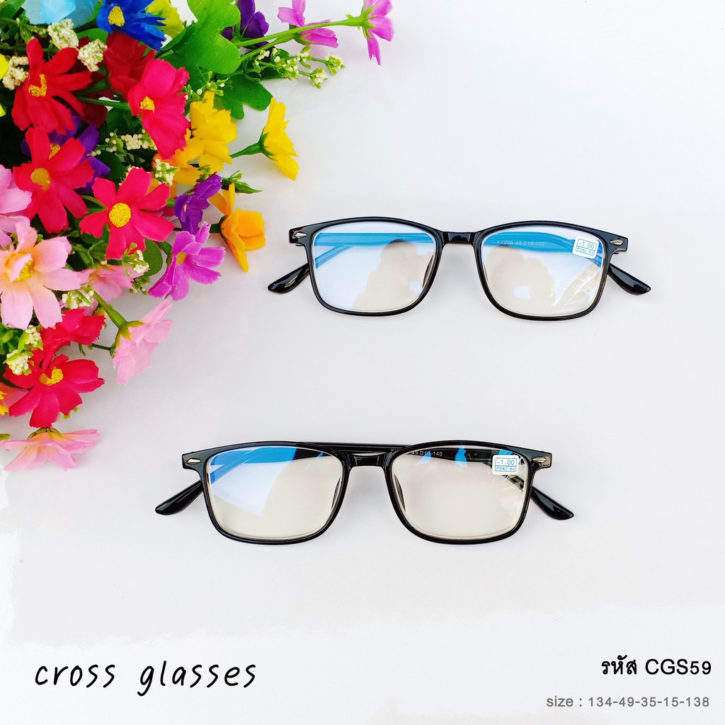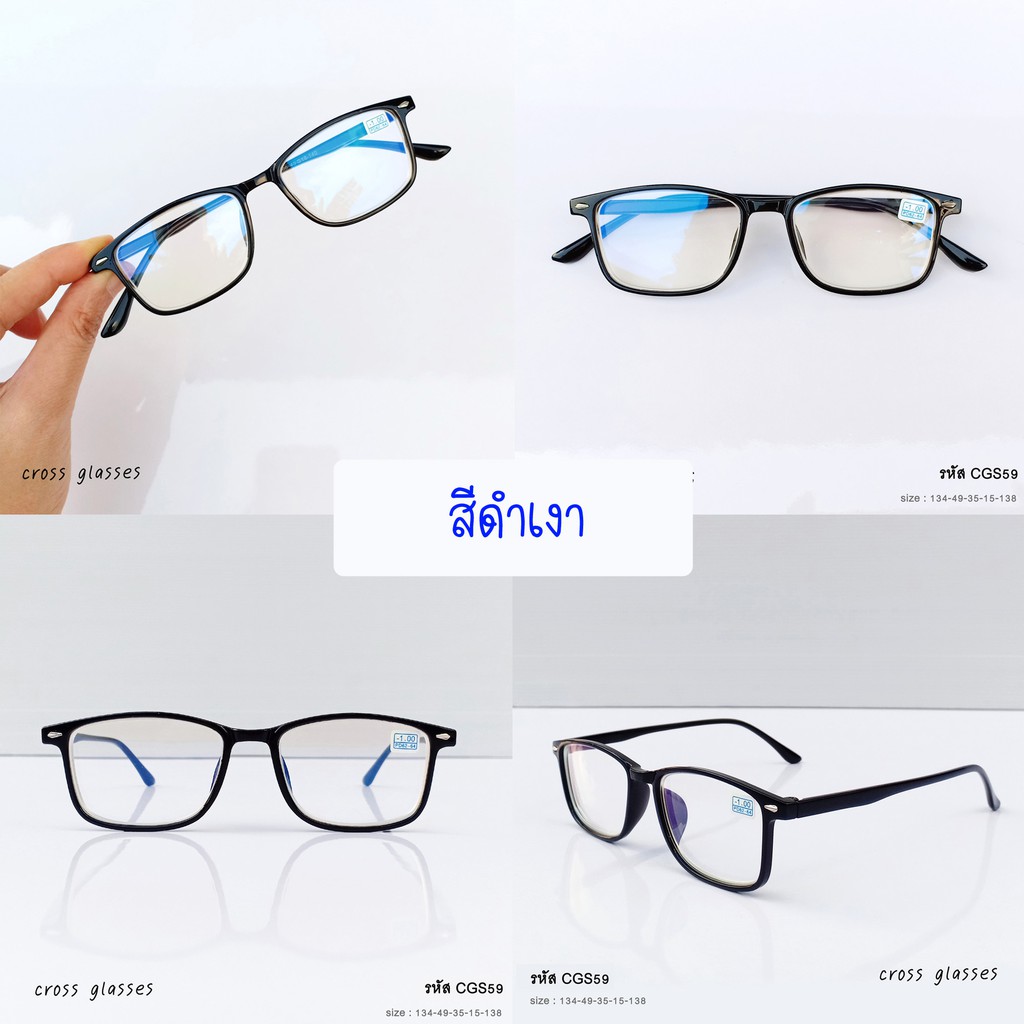 แว่นสาย ตาสั้นกรองแสง -1.0ถึง-6.0 และสายตาปกติ ทรงเหลี่ยม รหัส CGS59