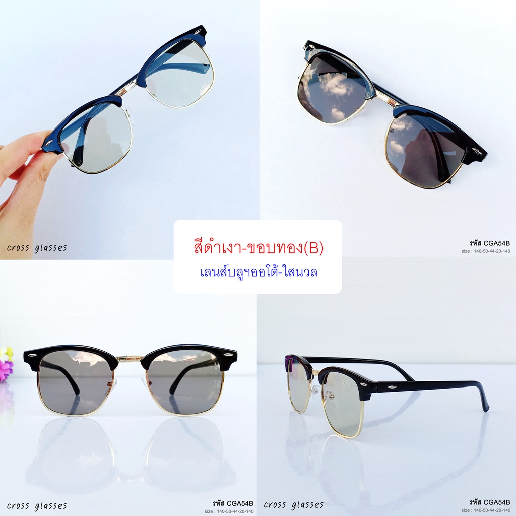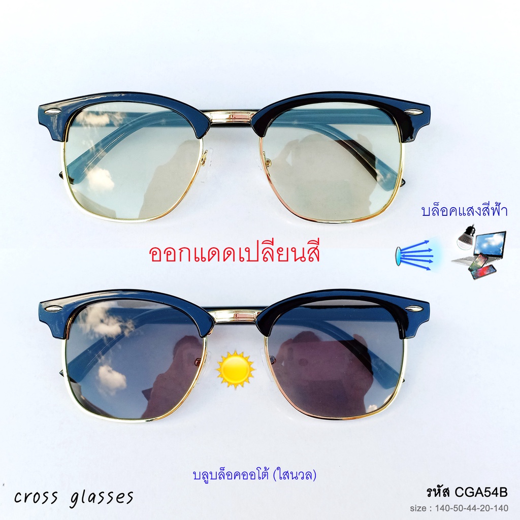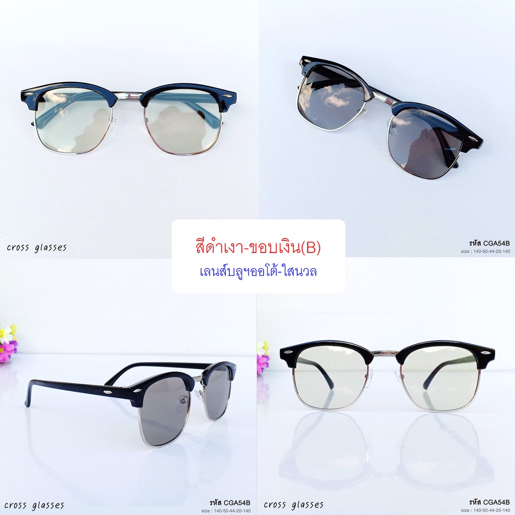 แว่นกรองแสงออกแดดเปลี่ยนสี เลนส์บลูฯออโต้ ทรงคลับมาสเตอร์ ค่าสายตาปกติ รหัส CGA54