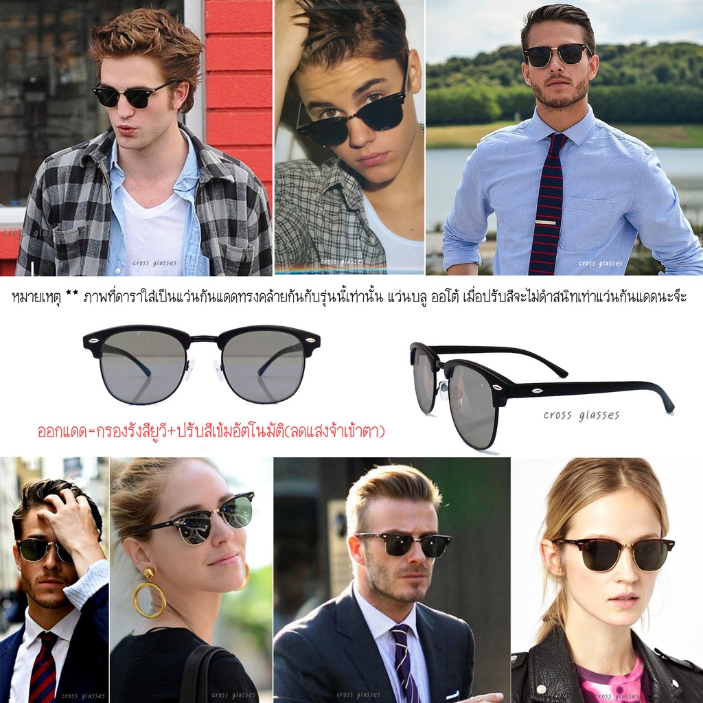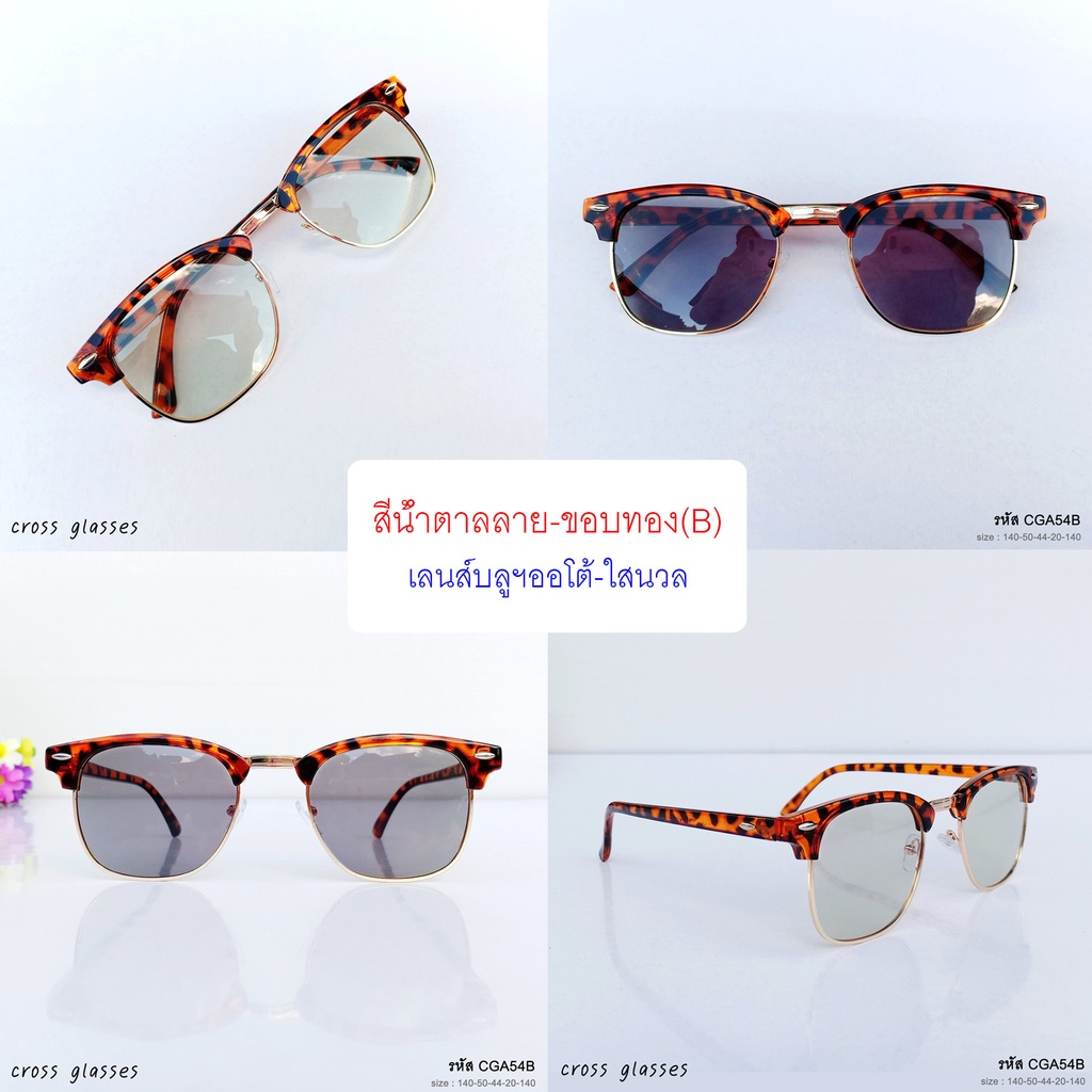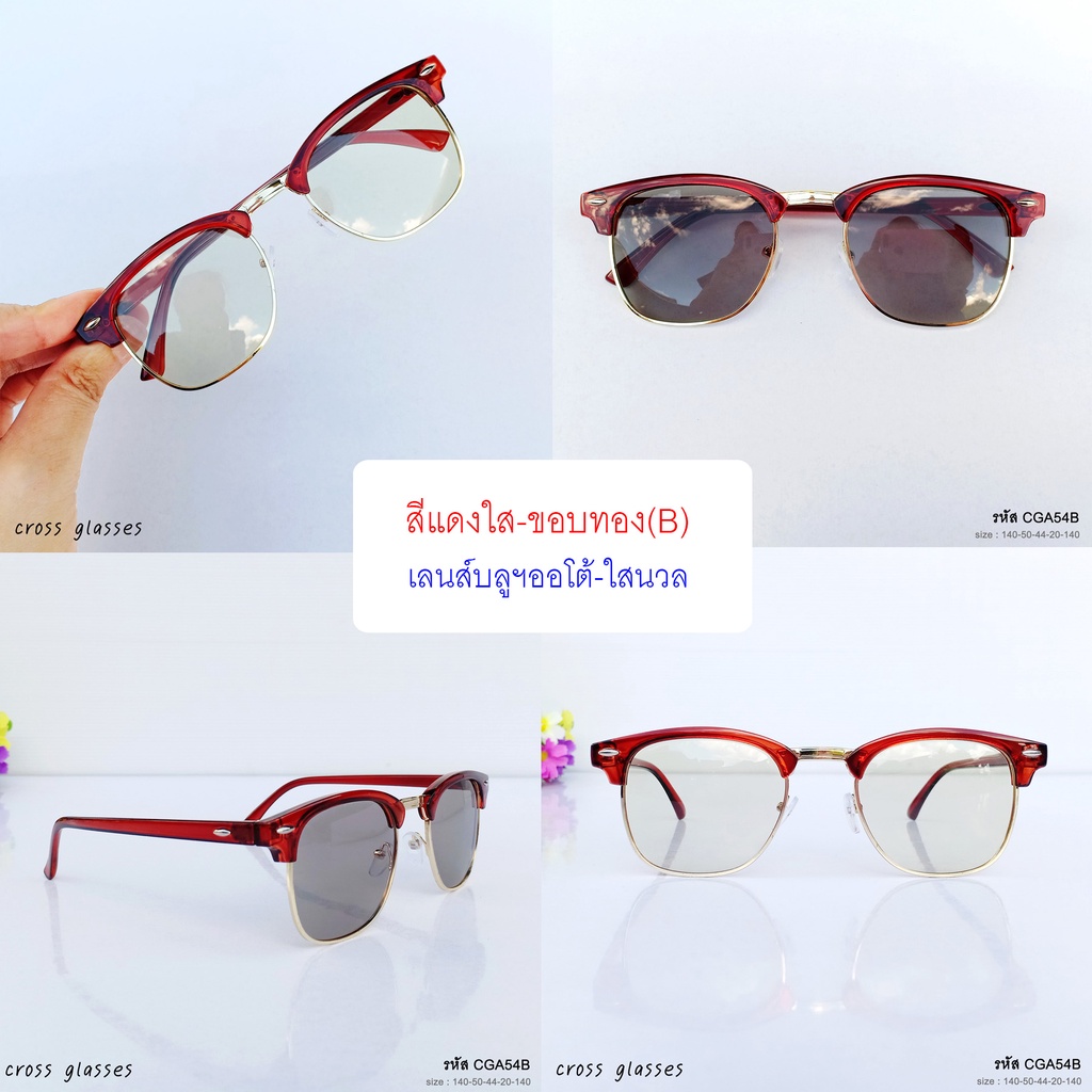 แว่นกรองแสงออกแดดเปลี่ยนสี เลนส์บลูฯออโต้ ทรงคลับมาสเตอร์ ค่าสายตาปกติ รหัส CGA54