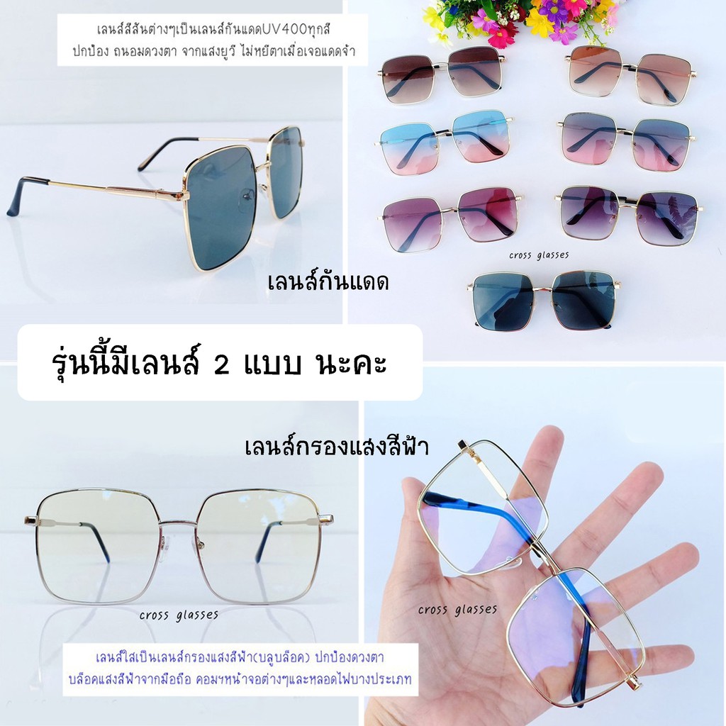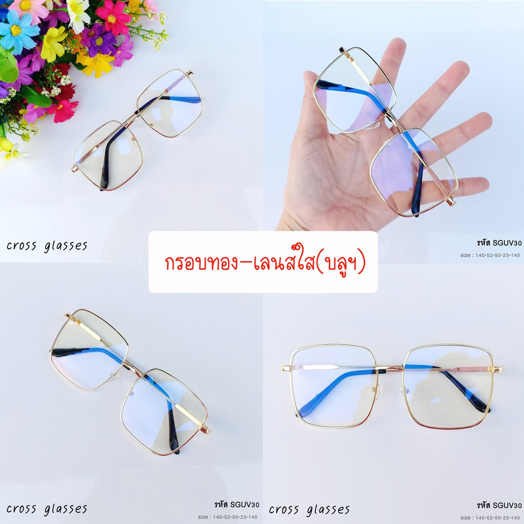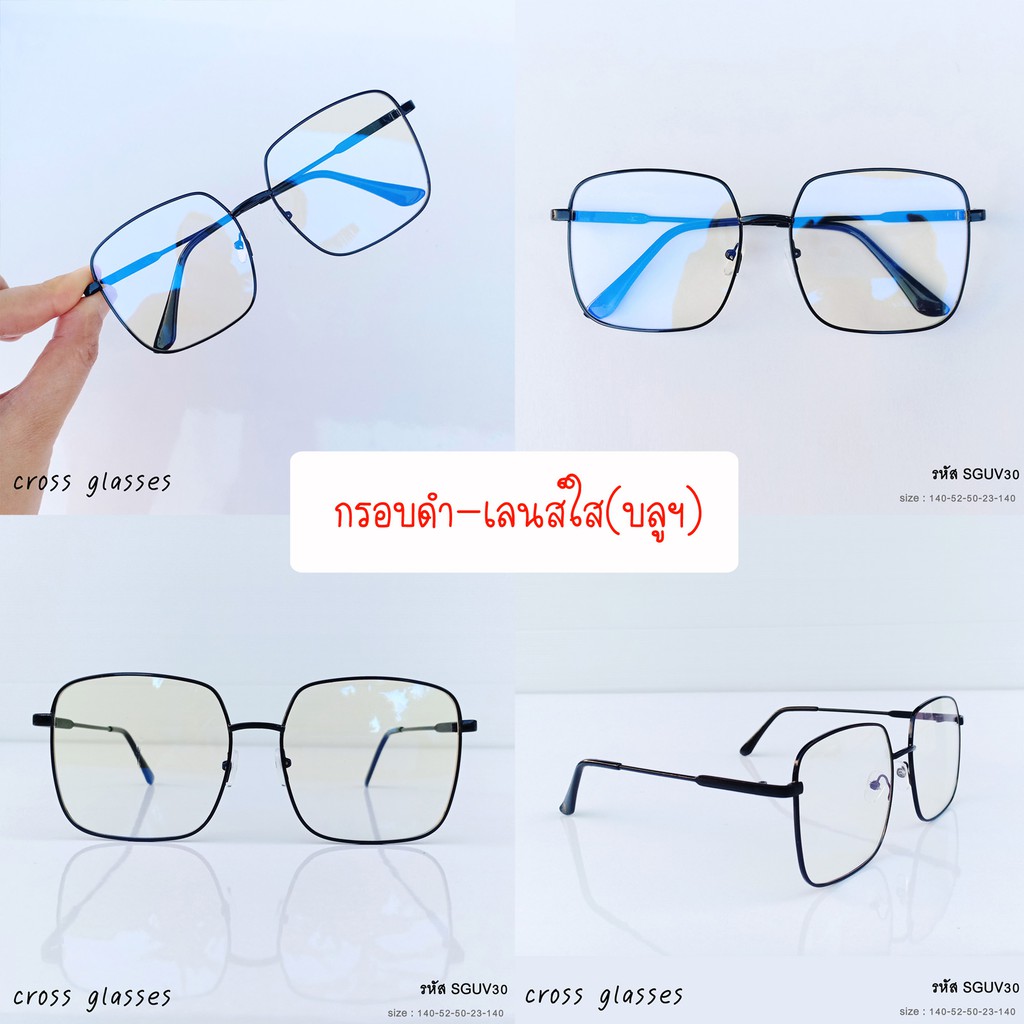 แว่นกันแดด & แว่นกรองแสง เลนส์บลูบล็อค ทรงเหลี่ยมใหญ่ สไตล์แฟชั่น รหัส SGUV30
