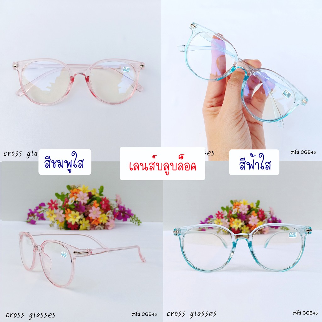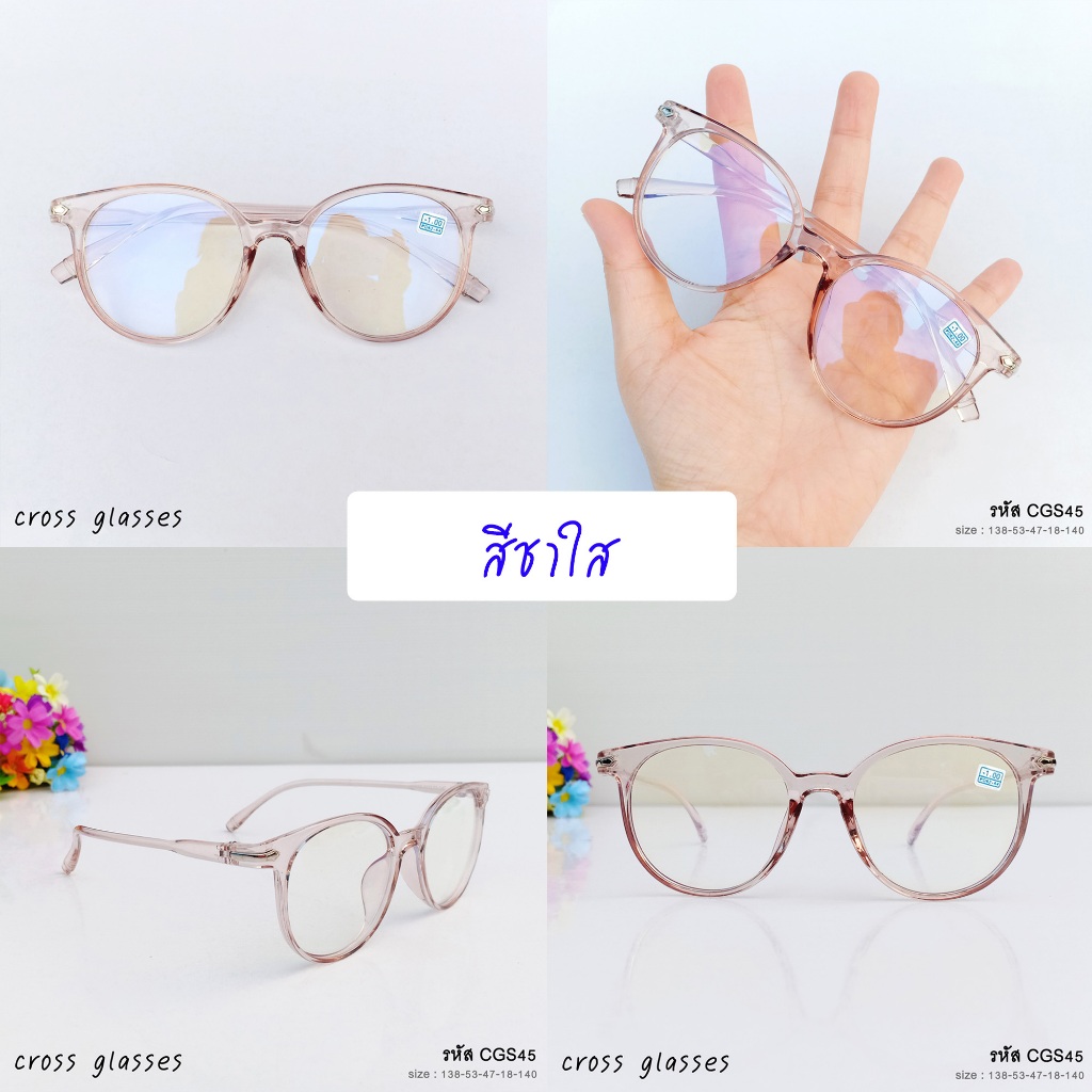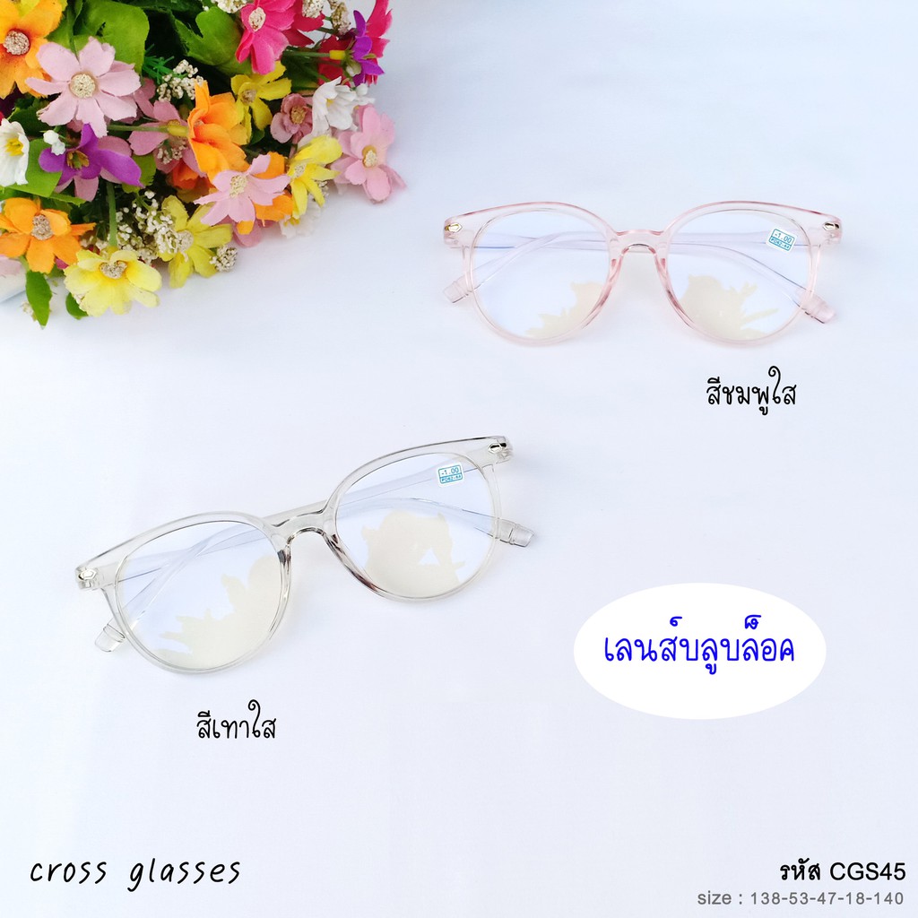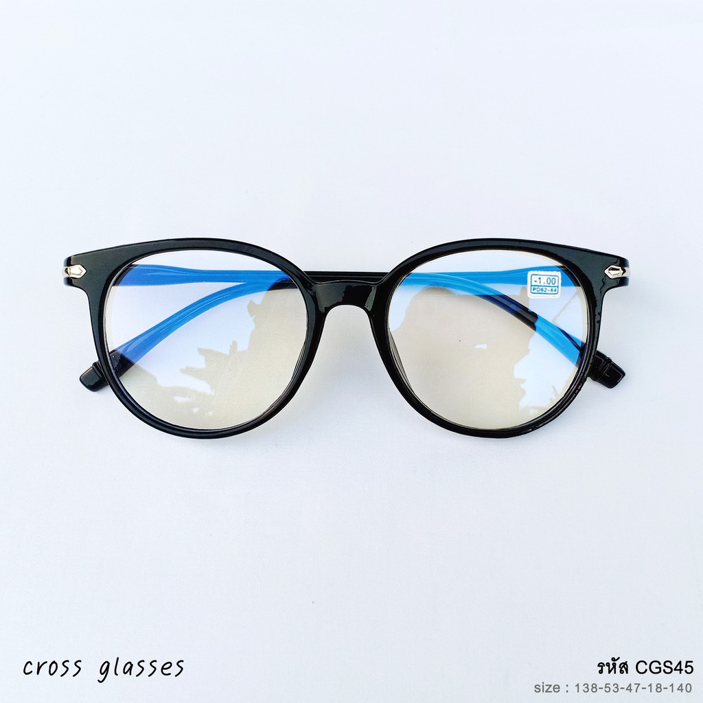 แว่นสายตาสั้นกรองแสง -0.5 ถึง-4.0 และสายตาปกติ เลนส์บลูบล็อค ทรงหยดน้ำ รหัส CGS45 พร้อมกล่อง+ผ้าเช็ดเลนส์