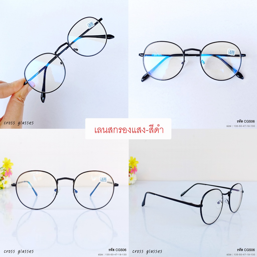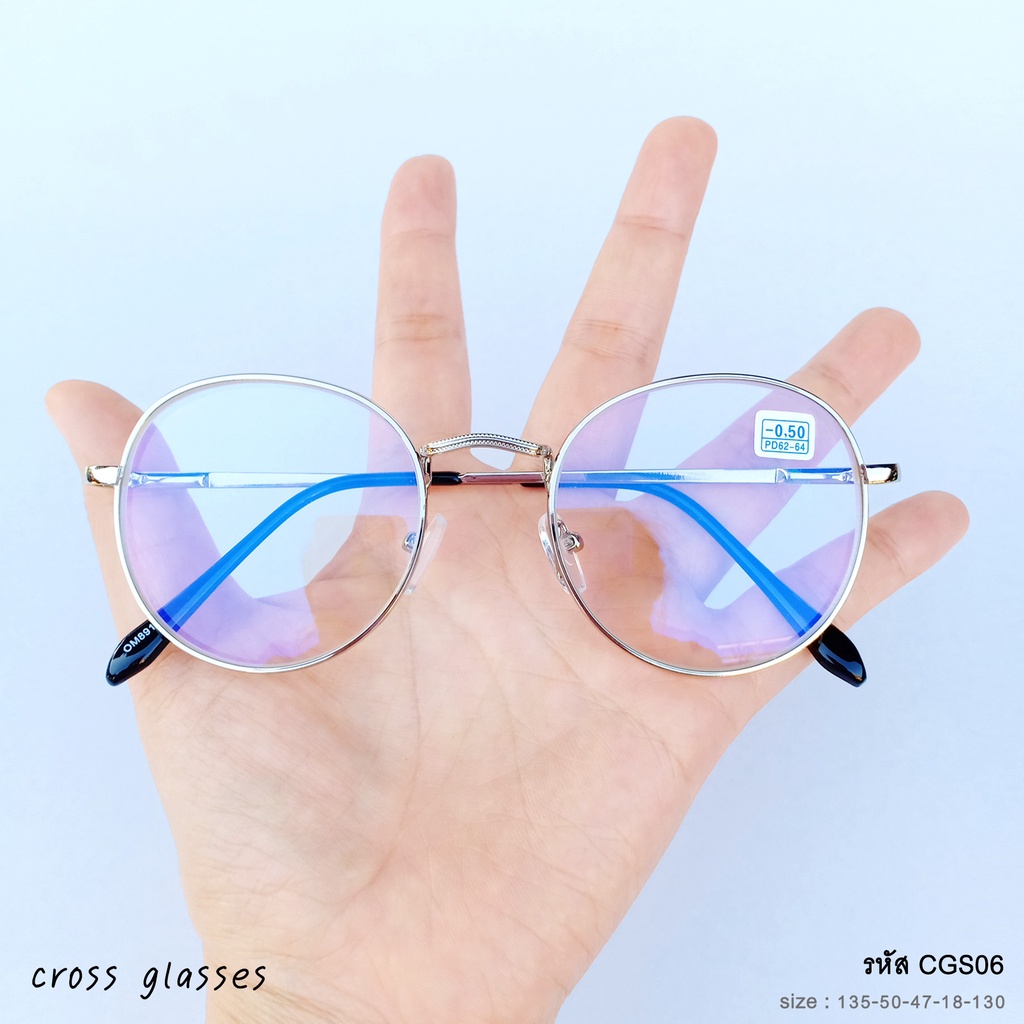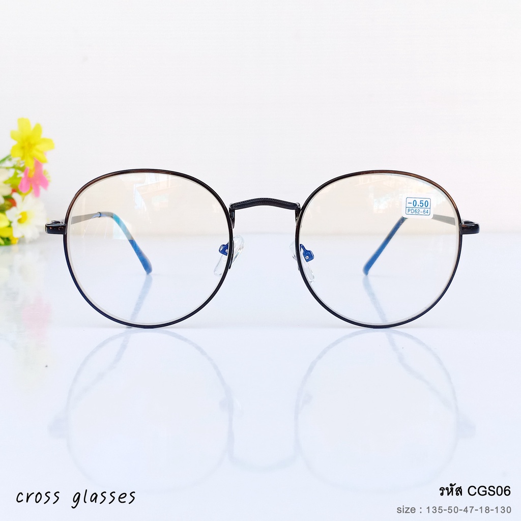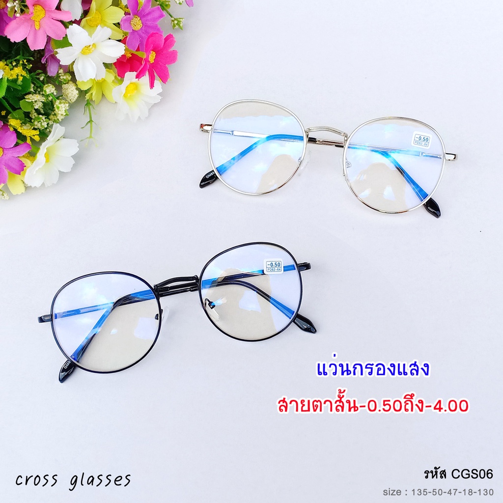 แว่นสายตาสั้นกรองแสง -0.5ถึง-4.0 ทรงหยดน้ำ รหัส CGS06 พร้อมกล่อง+ผ้าเช็ดเลนส์