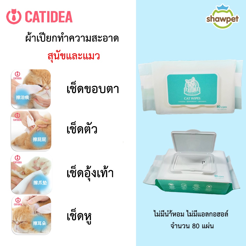 CatIdea ผ้าเปียกสุนัข แมว ไม่มีน้ำหอม ไม่มีแอลกอฮอล์ จำนวน80 แผ่น/ห่อ