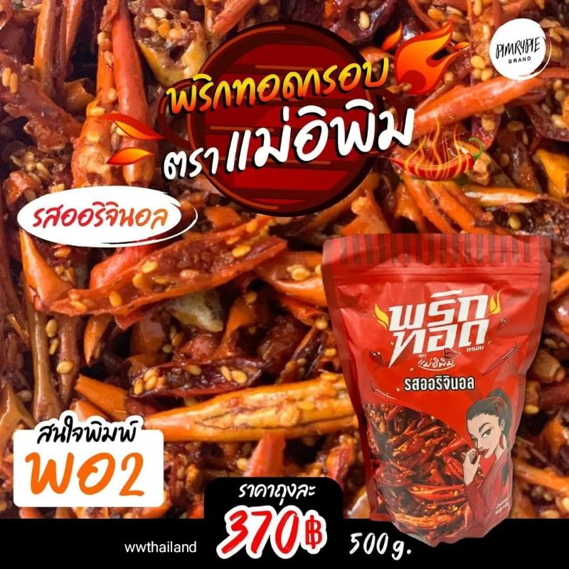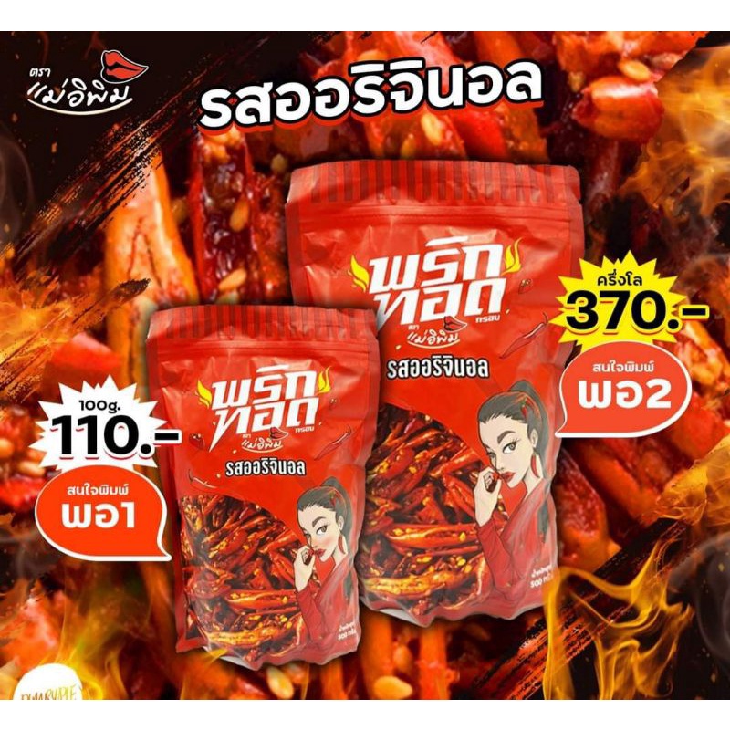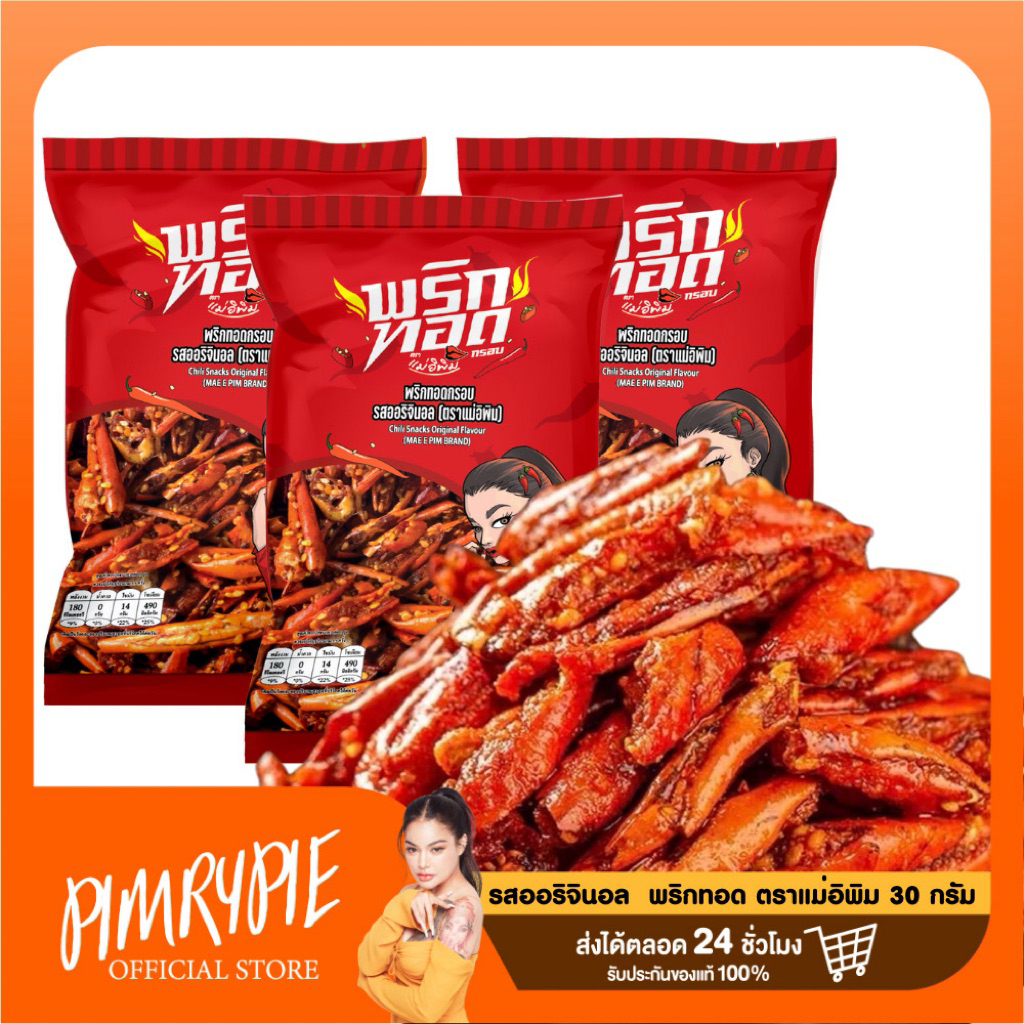 พริกทอดพิมรี่พาย ตราแม่อีพิม (ส่ง Kerry ทุกวัน)🌶🌶 ของแท้ รุ่นใหม่ล็อตล่าสุด📌 ขนาด 100 และ 500 กรัม ถูกที่สุด