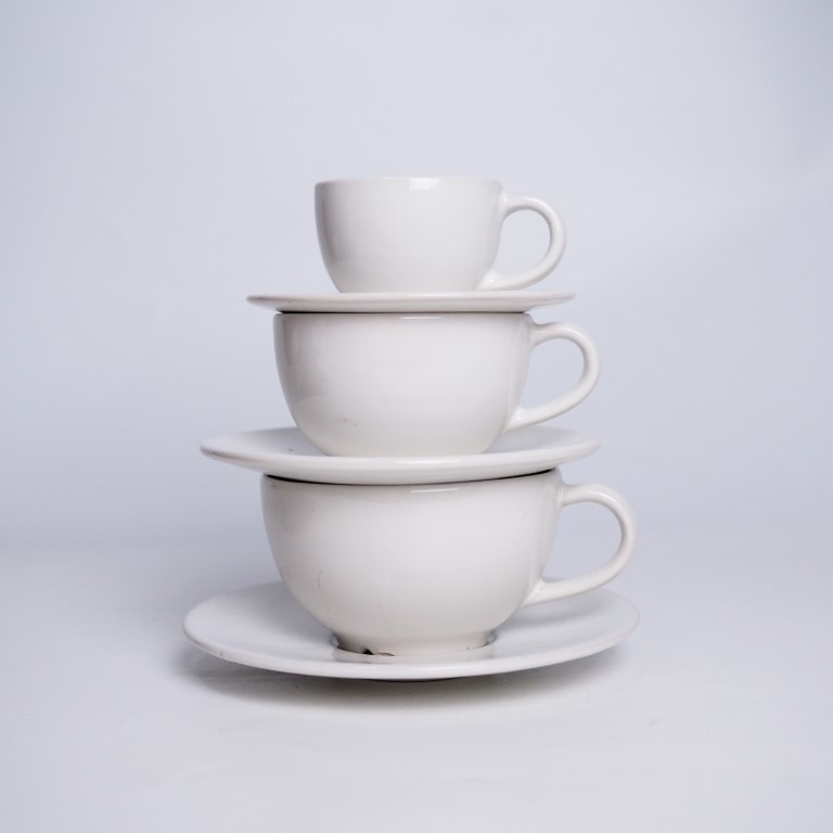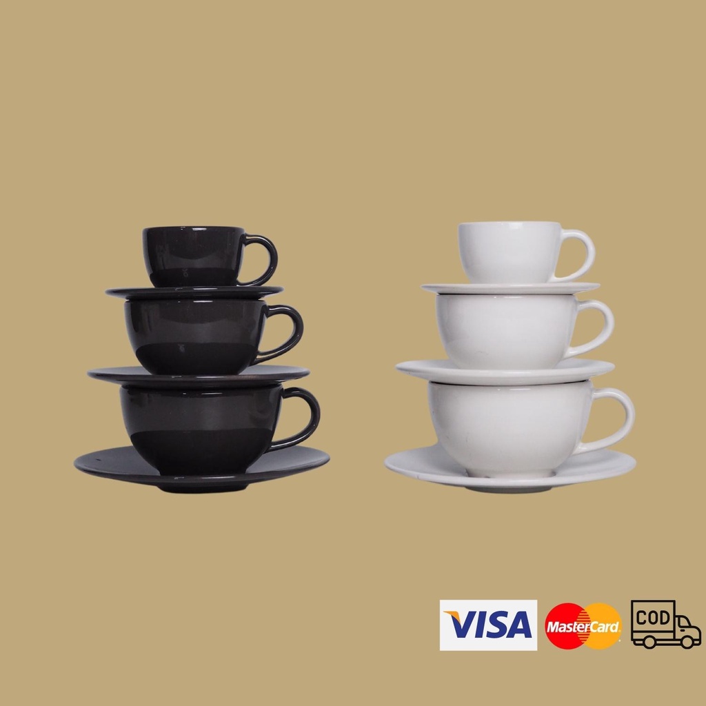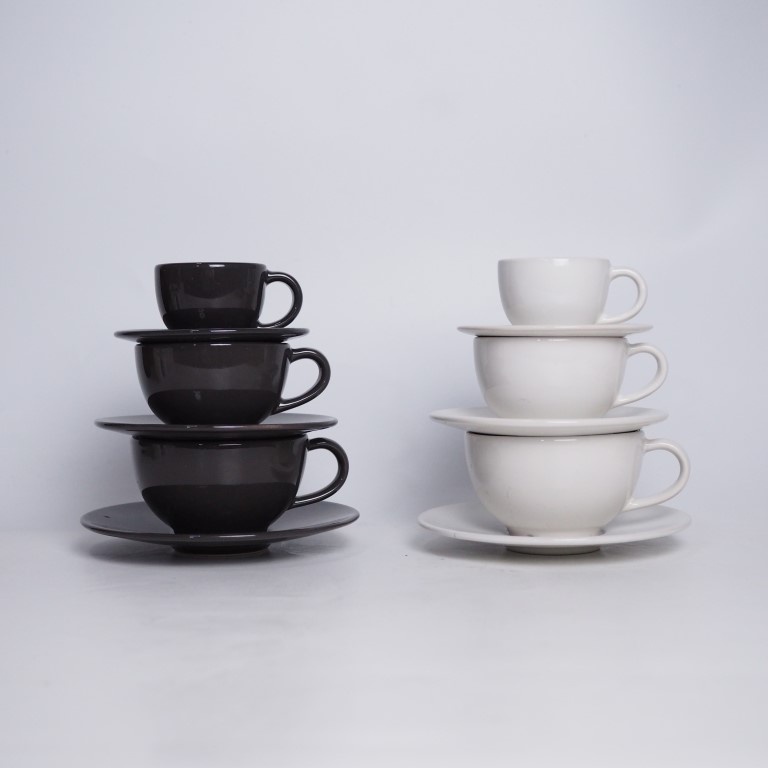 ชุดแก้วกาแฟพร้อมจานรองสีขาว ชุดแก้วกาแฟเซรามิคพร้อมจานรองสีเทาเข้ม/ครีม *เกรด B *