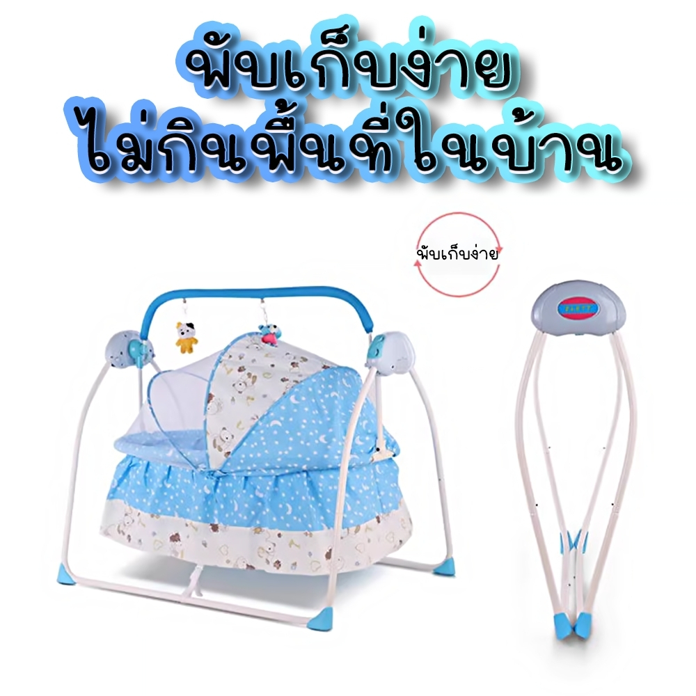 ⭐️Y&YToys Kids⭐เปลไกวเด็กอัตโนมัต เปลไฟฟ้า มี 3 ระดับ มีรีโมท มีมุ้งครอบตาข่าย พับขาเปลเก็บได้