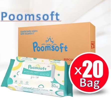 Poomsoft ทิชชู่เปียก กระดาษเปียก 20Packs(1600pcs) baby wipes ทิชชู่เปียกสําหรับเด็ก