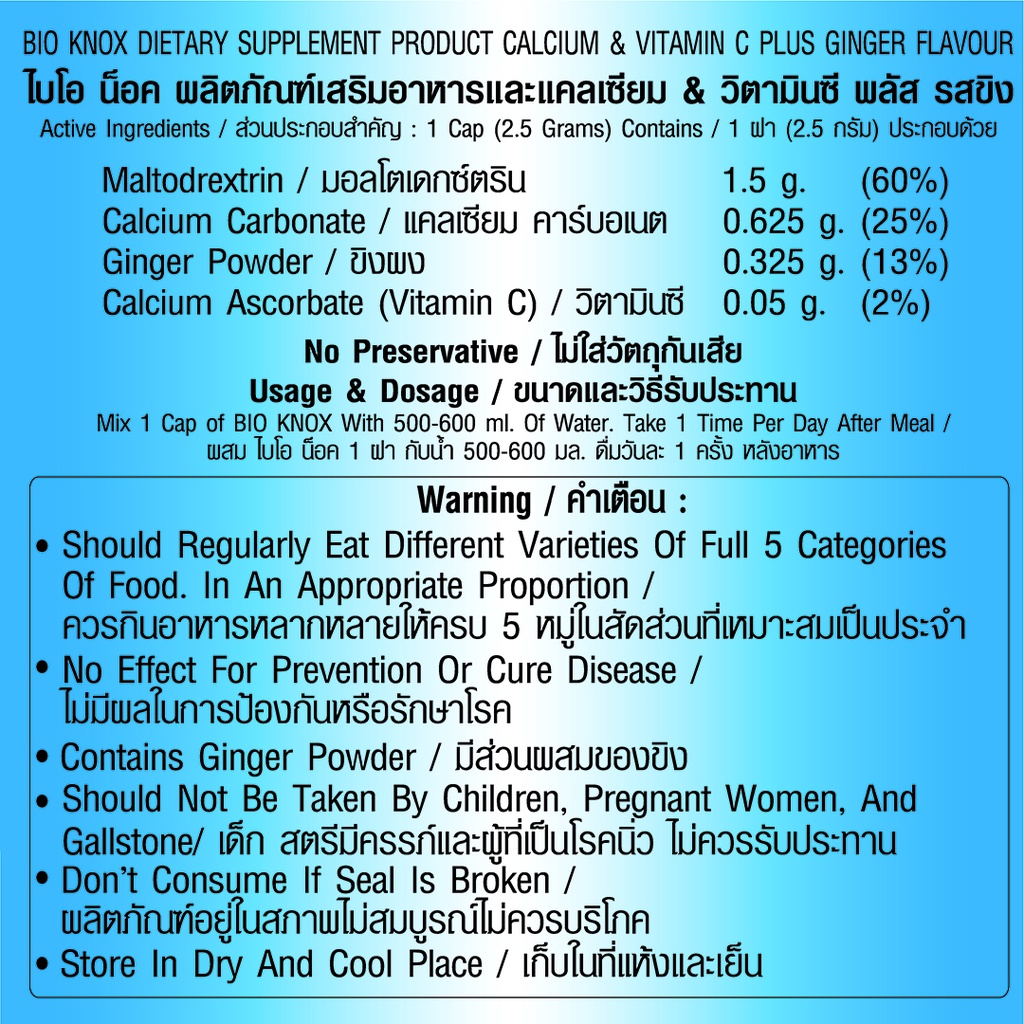 [ขายดี] Bio Knox ไบโอ น็อค แบบฝากด ผลิตภัณฑ์เสริมอาหารแคลเซียมและวิตามินซี รสขิง