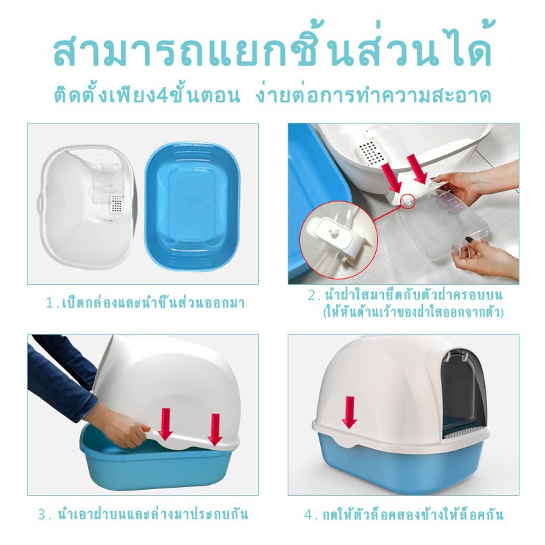 ห้องน้ำแมว พร้อมที่ตักทราย ห้องน้ำแมวทรงโดม มีฝา ทราย กระบะทรายแมว 2 ชั้น ทรายแมวและห้องน้ํา ป้องกันทรายกระเด็น ระงับกลิ