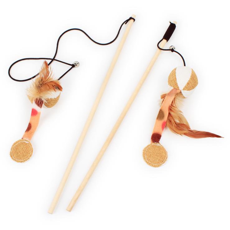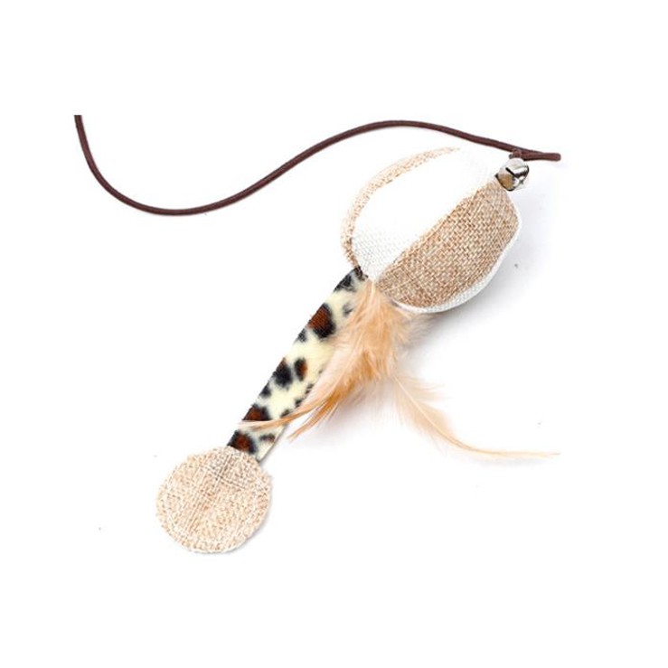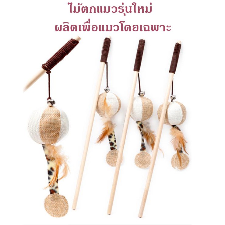 ไม้ตกแมว ไม้ล่อแมว ไม้แมว มีกระดิ่ง ดึงดูดความสนใจของแมว รุ่นบอลขนนกลายเสือดาว ของเล่นแมว ของเล่นสัตว์เลี้ยง แบบไม้