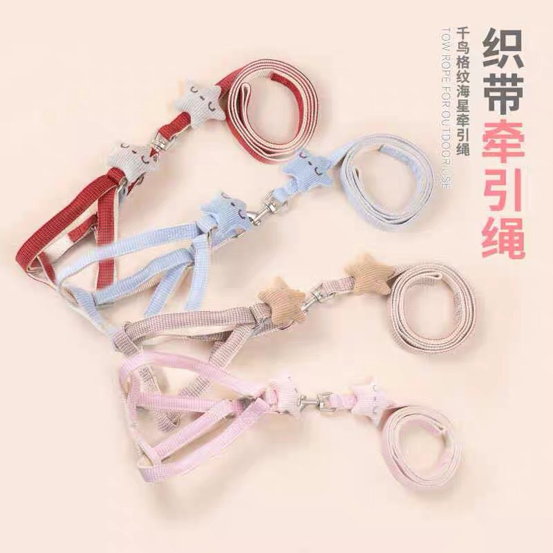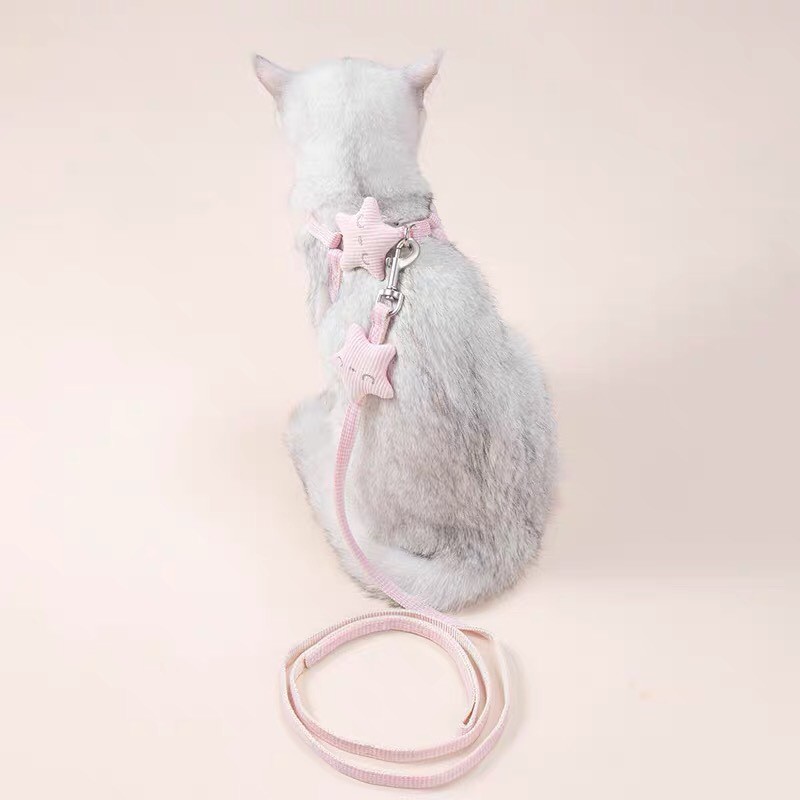 สายจูงสัตว์เลี้ยง สายจูงแมว สายจูงสุนัข น่ารัก รูปดาว ป้องกันการหลุด ปรับความยาวได้ ผ้าระบายอากาศ