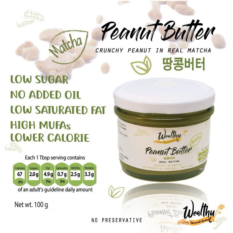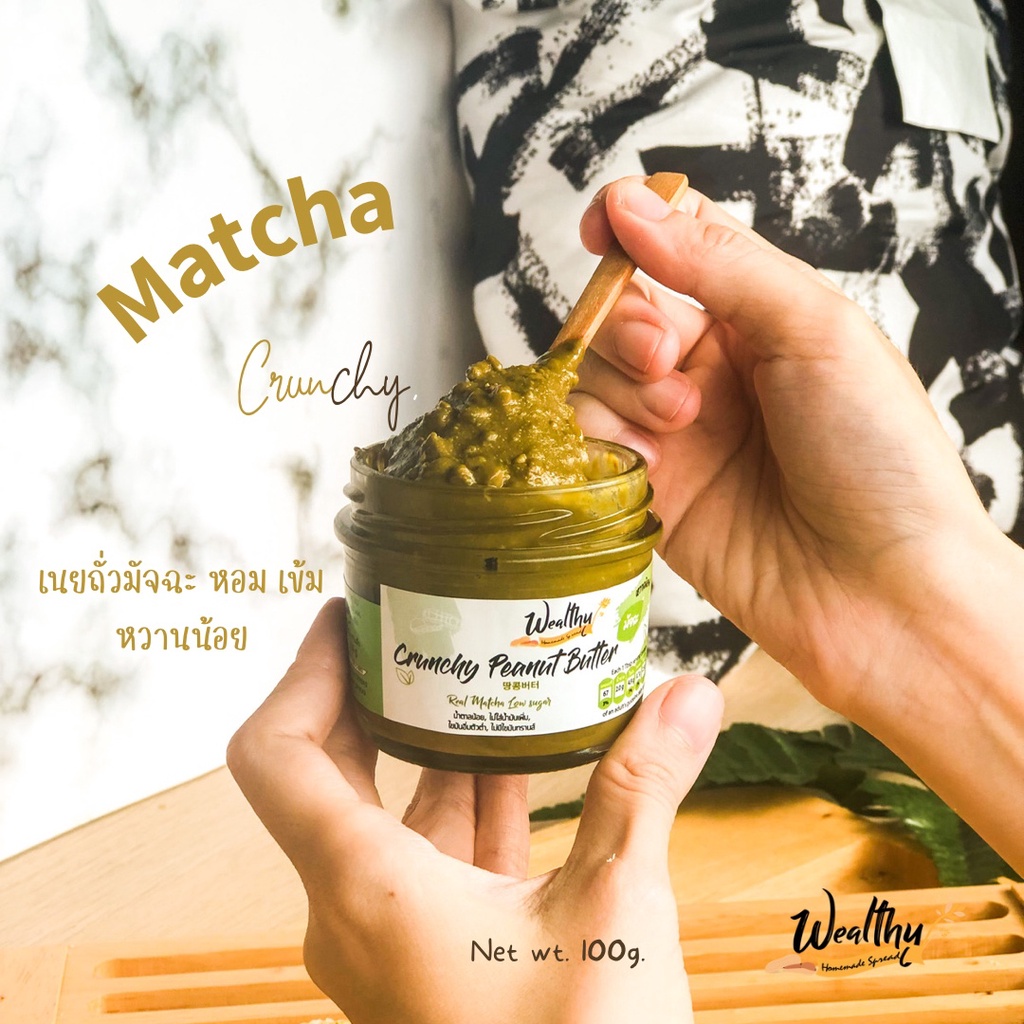 Wealthy เนยถั่วรสชาเขียว ชนิดผสมถั่วบดหยาบ Matcha crunchy peanut butter