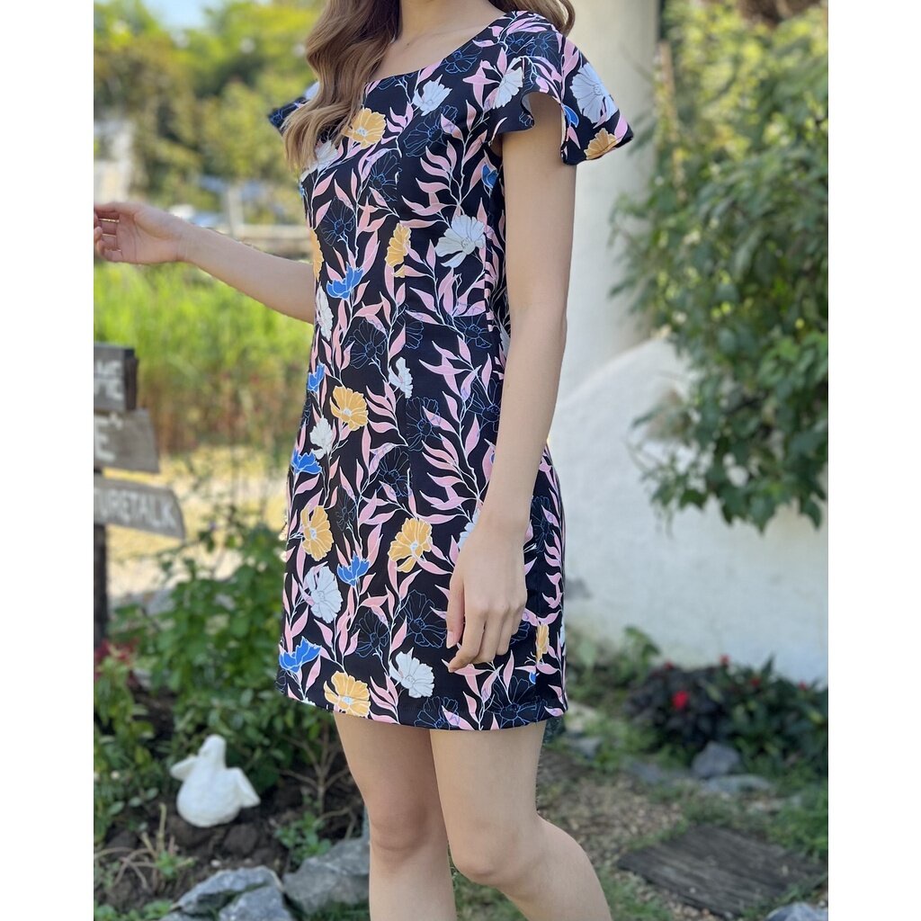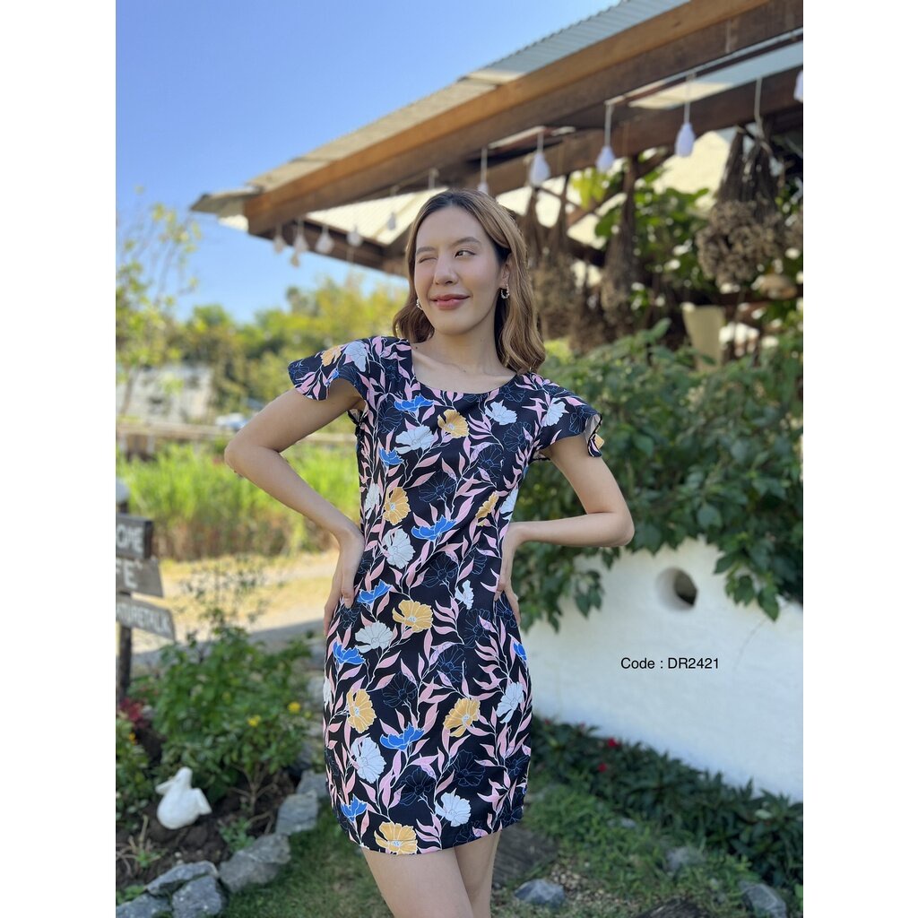 DR2421 เดรสผ้าสลาฟพิมพ์ลาย สีดอกไม้โทนสีหวานบนพื้นสีเข้ม ไม่หวานมากแต่น่ารักมาก