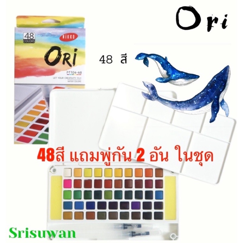 Ori แท้100% สีน้ำก้อน พร้อมพู่กันแทงค์ 12/24/36/48สี สีน้ำตลับ สีน้ำหลุม ชุดสีน้ำ เซทสีน้ำ สีน้ำ โอริ oriของแท้ morglory