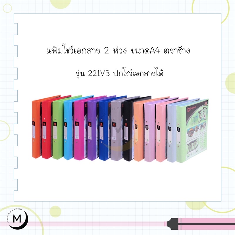 Elephant แฟ้ม 2 ห่วง ตราช้าง รุ่น 221VB ขนาด A4 สัน 3.5 cm. ใส่หน้าปกได้