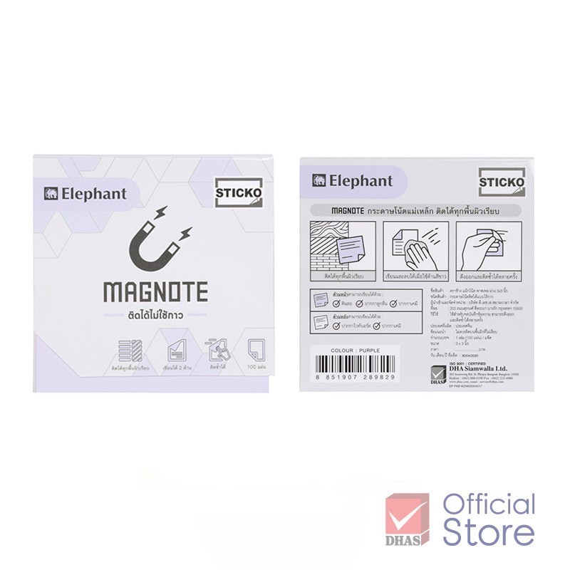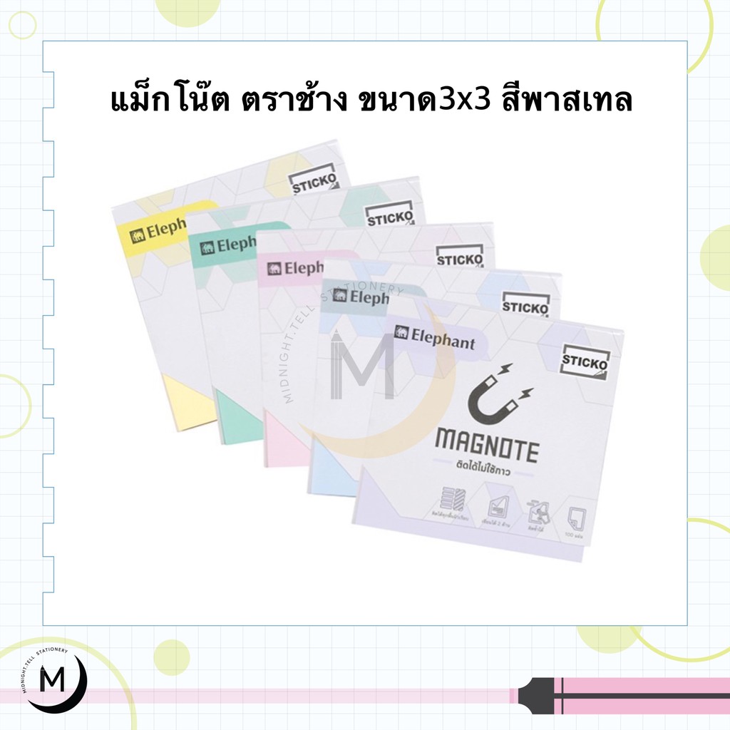 Elephant Magnote กระดาษโน๊ตแม่เหล็ก ติดได้ทุกพื้นผิวยกเว้นผิวมัน สีพาสเทล ขนาด 3x3 นิ้ว