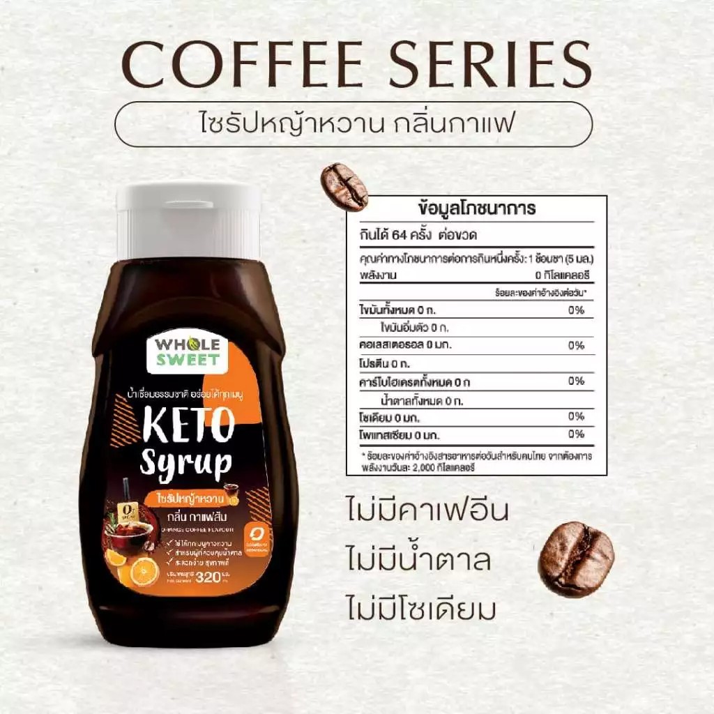 Whole Sweet โฮลสวีท ไซรัปหญ้าหวาน ไซรัปคีโต น้ำเชื่อมหญ้าหวาน สูตรคีโต 320 มล. Keto Syrup สารให้ความหวานทดแทนน้ำตาล