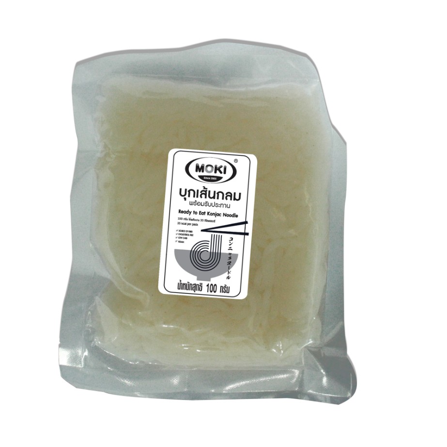 MOKI บุกเส้นกลม พร้อมทาน 100g (FK0126-1) เส้นบุก บุกเพื่อสุขภาพ คีโต ไม่มีแป้ง keto Konjac Noodle Ready to eat เจ