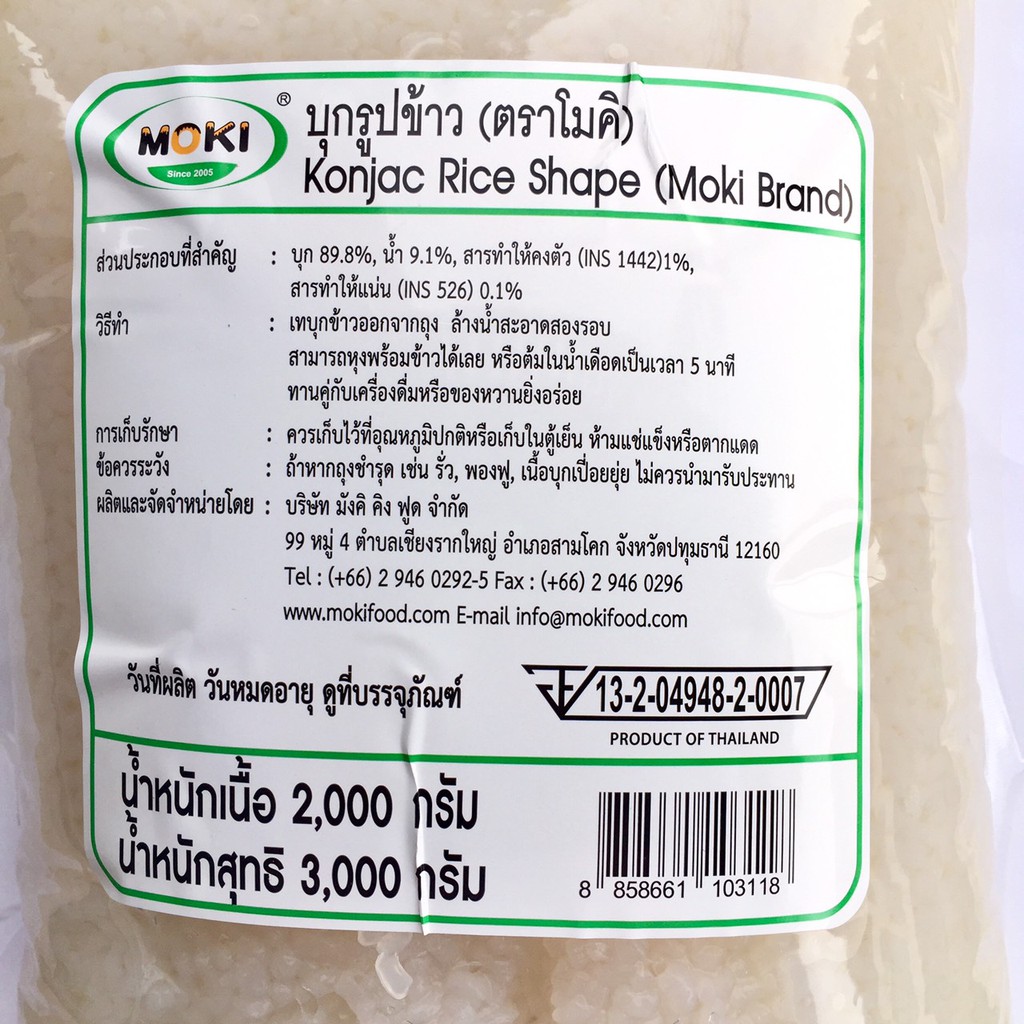 Moki บุกรูปข้าว 2000กรัม (FK0196-1) บุกข้าว ข้าวบุกคีโต บุกเพื่อสุขภาพ คีโต ไม่มีแป้ง keto Konjac Rice