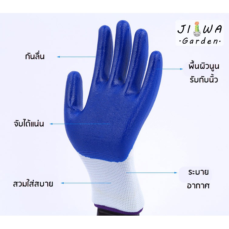 (J006) ถุงมือทำสวน ถุงมือกันหนามแคคตัส กันบาด กันลื่น กันน้ำ ถุงมือไนล่อนเคลือบยางไนไตร ถุงมืองานช่าง