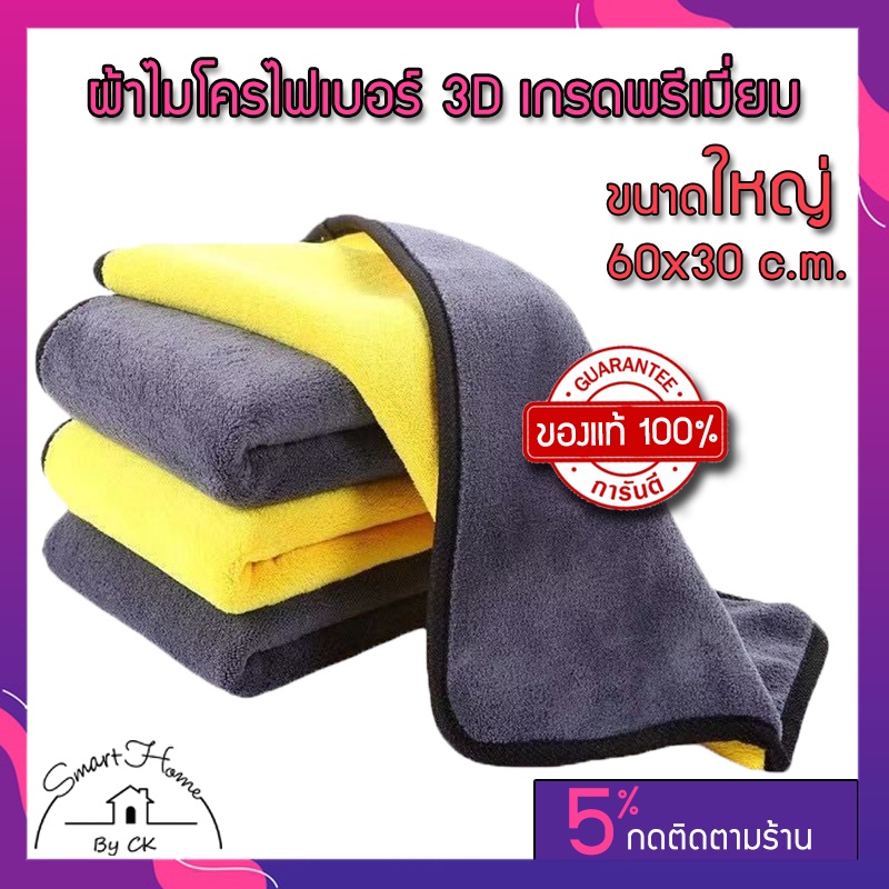 ผ้าเช็ด ไมโครไฟเบอร์ ผ้าเช็ดรถ ผ้าไมโครไฟเบอร์ ซับน้ำได้ดี (ขนาดใหญ่ 60x30 cm.)