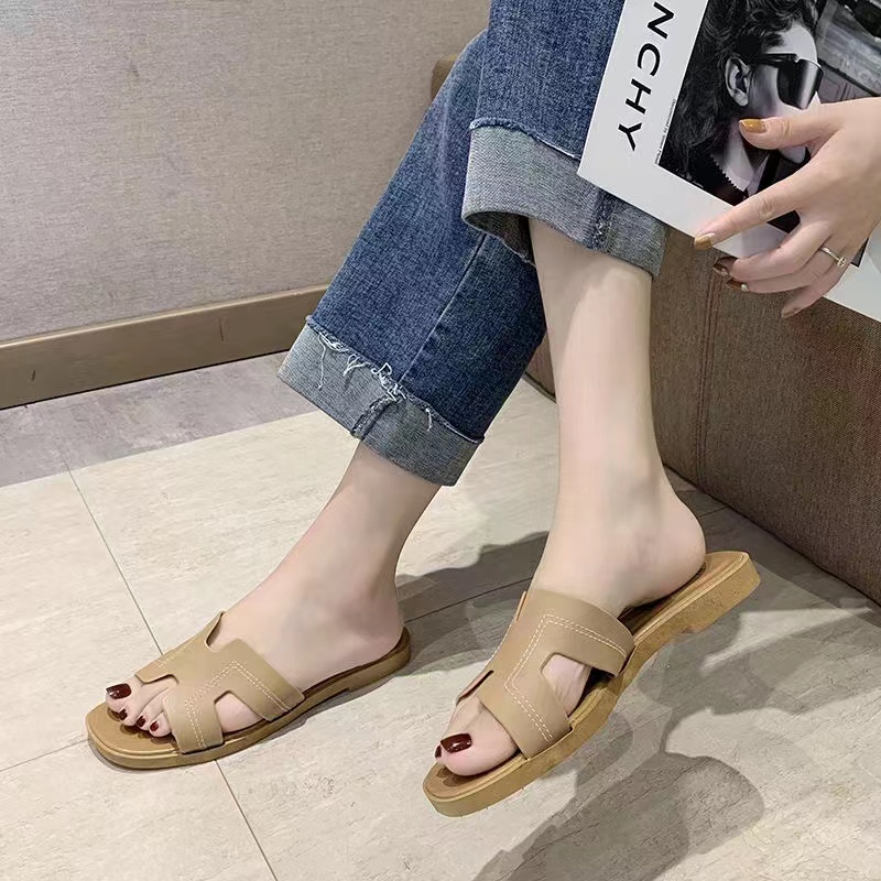 H02 (พื้นสีครีม) รองเท้าแตะพร้อมส่ง ยางนิ่ม สวมสบาย ราคาถูกมาก เป็นยางพลาสติกนิ่มนะคะ ไม่ใช่หนัง
