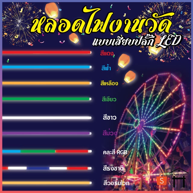 PAE-0018 หลอดไฟLED งานวัด ไฟตกแต่ง ไฟยาว 120 ซม.