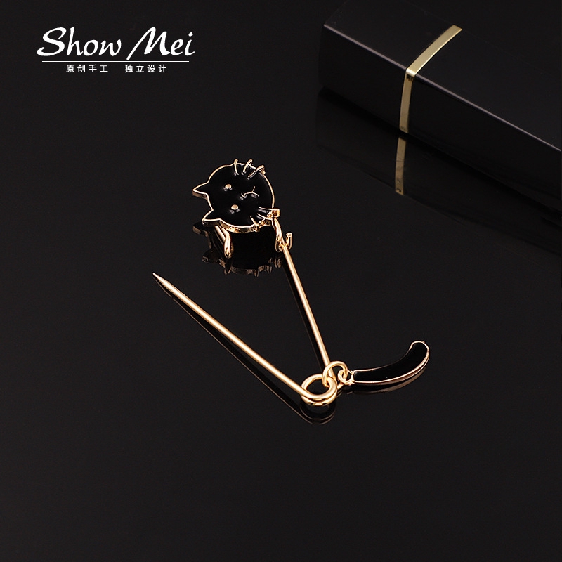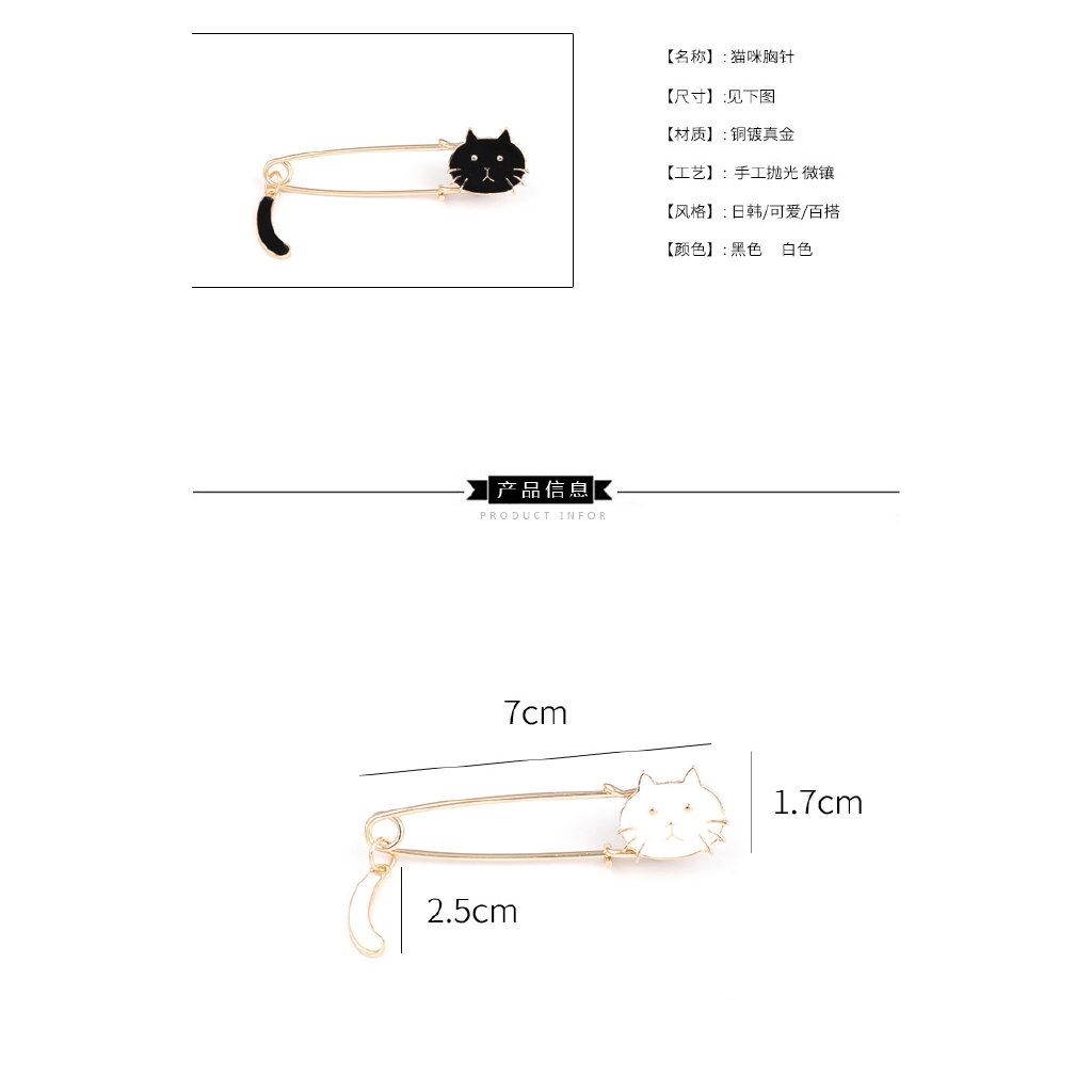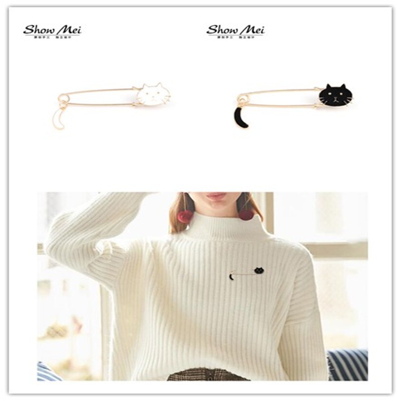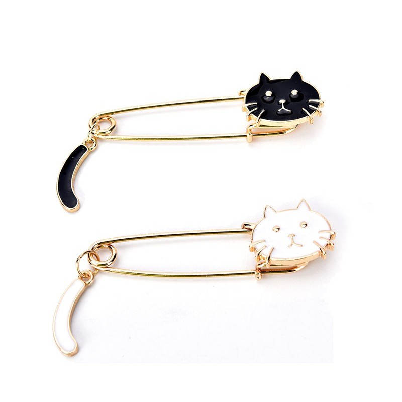 ytsss2frwi เข็มกลัด รูปแมว สีดำ/ขาว น่ารัก สำหรับผู้หญิง มี 2 สี รุ่น