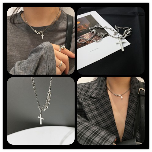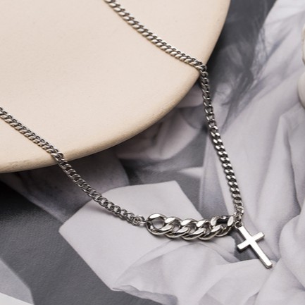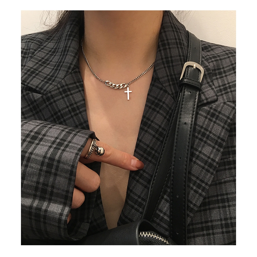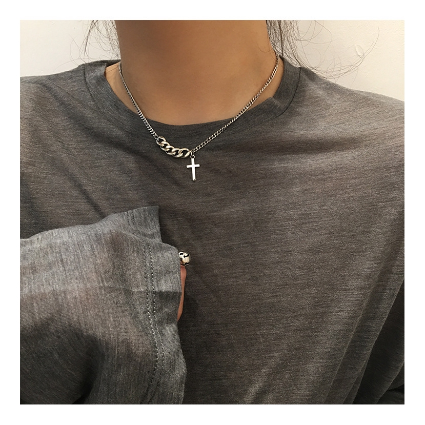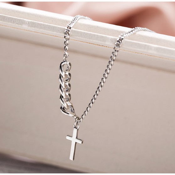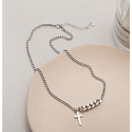สร้อยคอสายโซ่จี้ไม้กางเขนสั้นสไตล์เกาหลี ( silver)