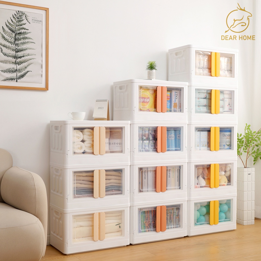 Dear Home กล่องเก็บของอเนกประสงค์พับเก็บได้พร้อมฝาปิด ลังพลาสติกพับเก็บได้ กล่องพลาสติก ที่ใส่ของ