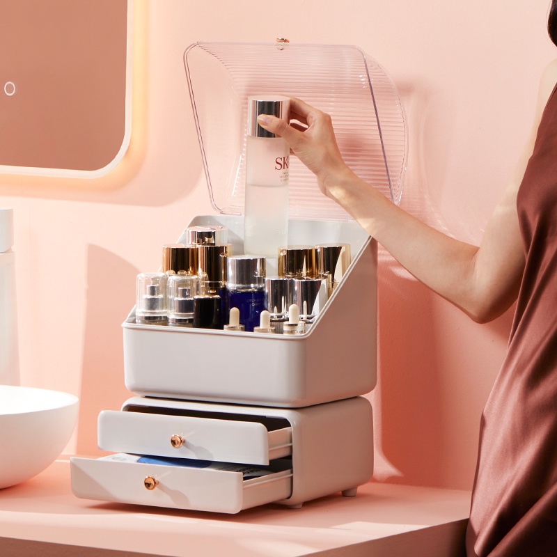 DearHome กล่อ งเก็บเครื่องสำอางแบบแบ่งชั้น กล่องใส่เครื่องสำอาง มีลิ้นชักในตัว ชั้นวางเครื่องสําอาง