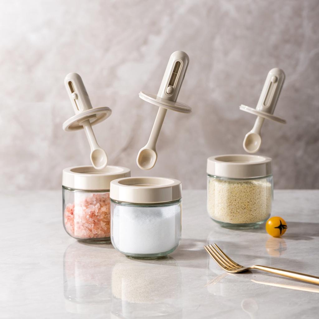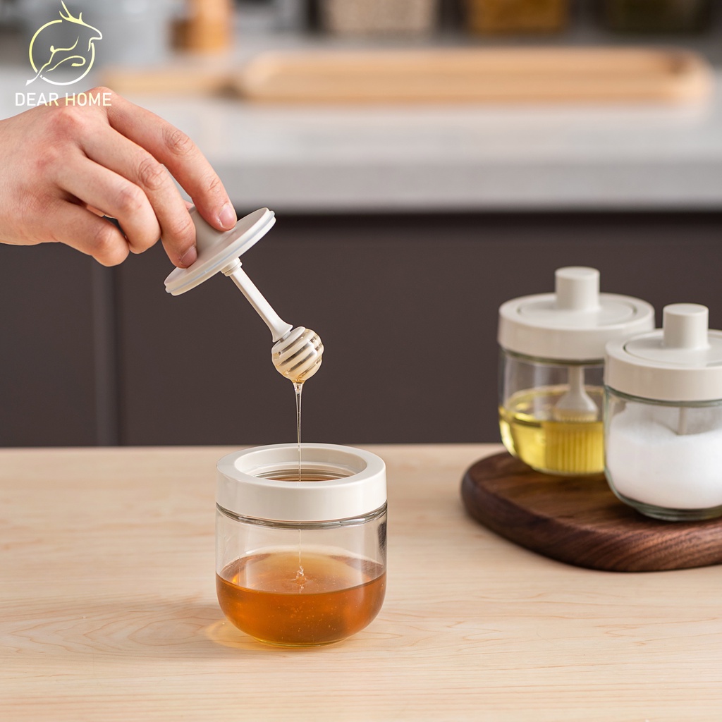 Dear Home โถแก้วปรุงรสฝาพร้อมช้อน,ขวดใส่เกลือ,ขวดแก้วเครื่องเทศ,โถ,ที่ใส่เครื่องปรุง