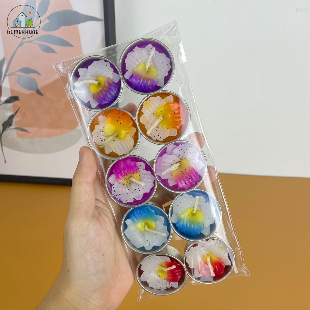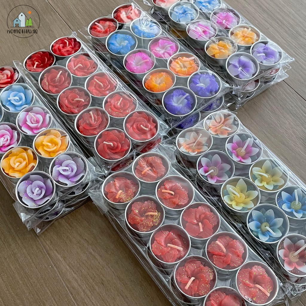 เทียนดอกไม้ เทียน เทียนหอม เทียนสปา เทียนทีไลท์ กลิ่นหอม กลิ่นดอกไม้ 1 แพ็ค 10 ชิ้น Scented Candles