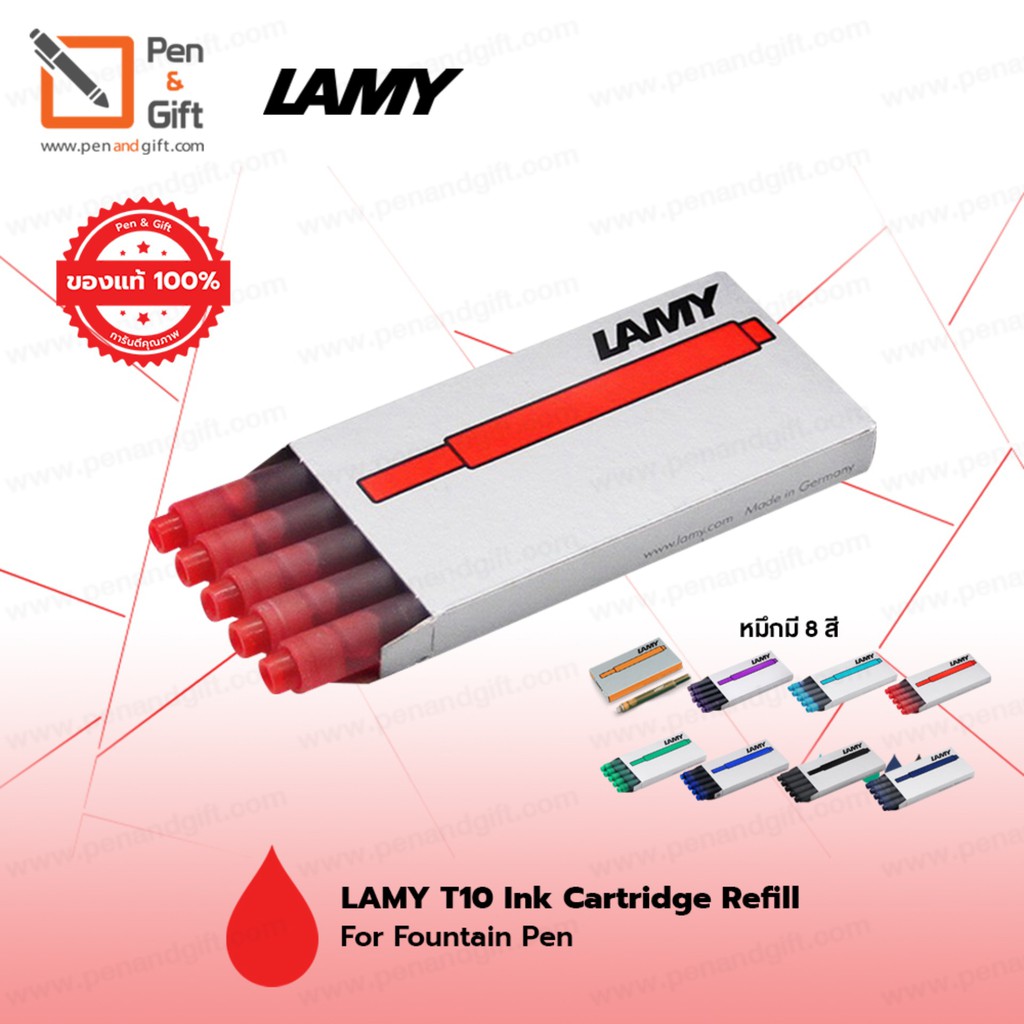 หมึกหลอด LAMY T10 มี 9 สี สำหรับปากกาหมึกซึม แพ็ค 5 ชิ้น - Ink Cartridge Refill for Fountain Pen 9 Color ของแท้ 100%