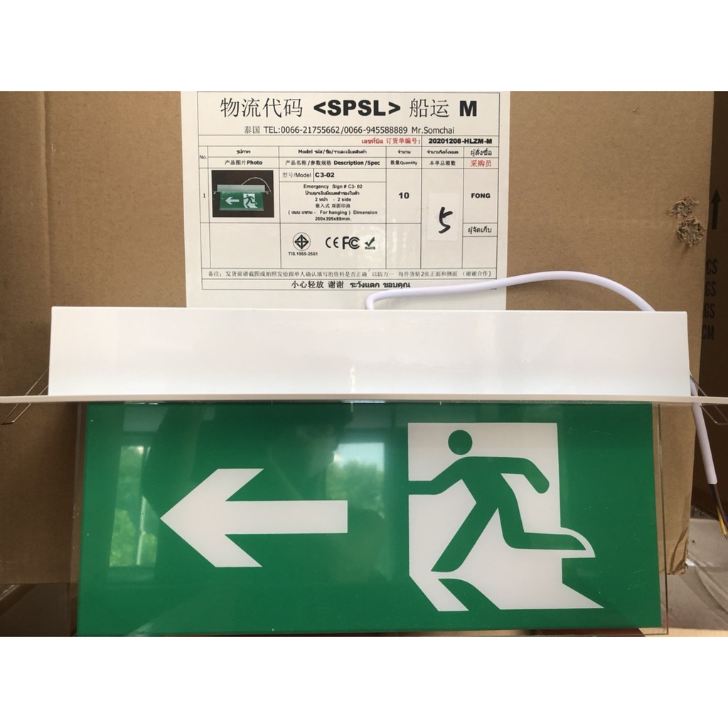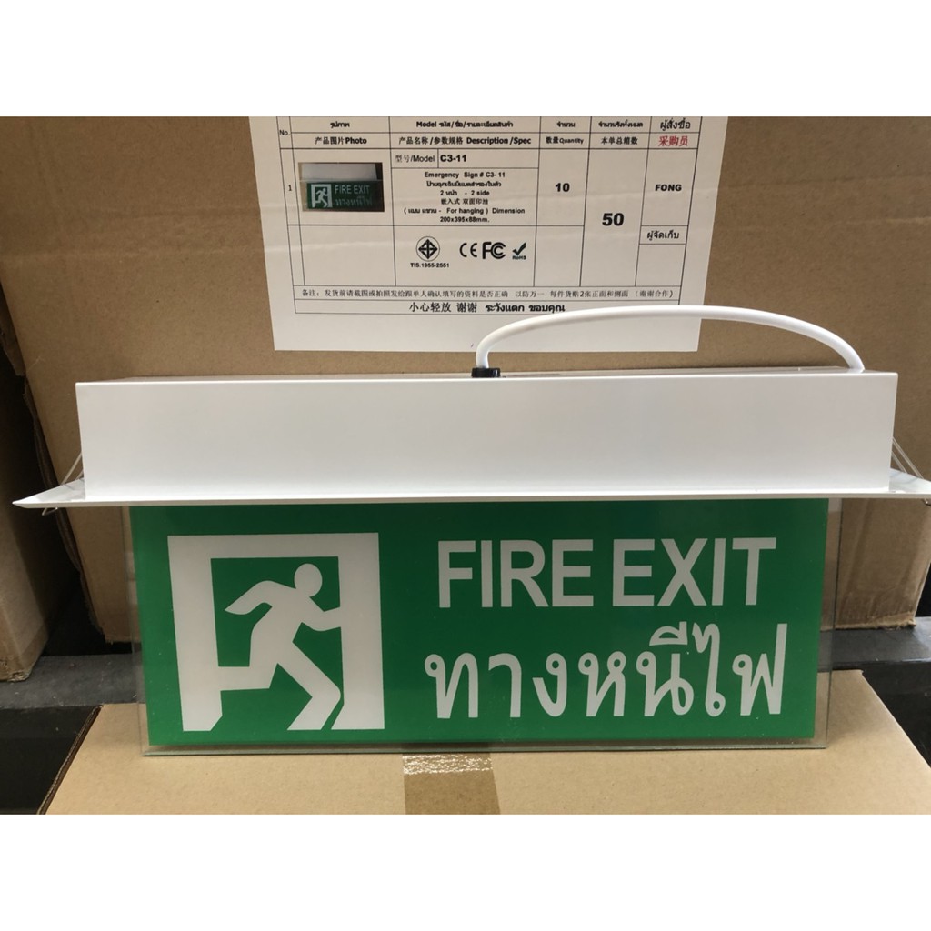 ป้ายไฟฉุกเฉินแบบฝังฝ้า ฝังผนัง เห็น2ด้าน ไฟในตัว ป้ายทางหนีไฟ Fire Exit/ Emergency มาตรฐาน มอก แบบฝังฝ้า สำรองไฟ 3-5 ชม.