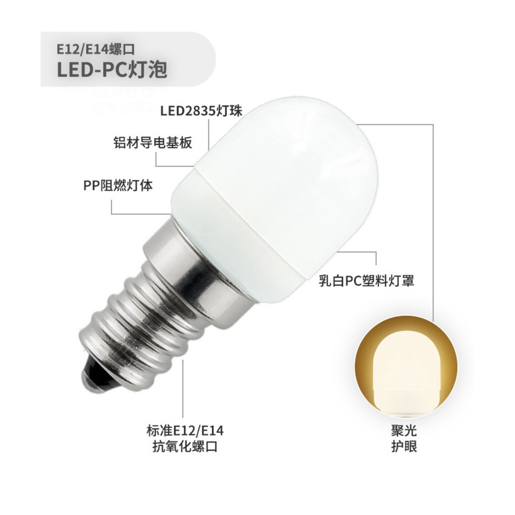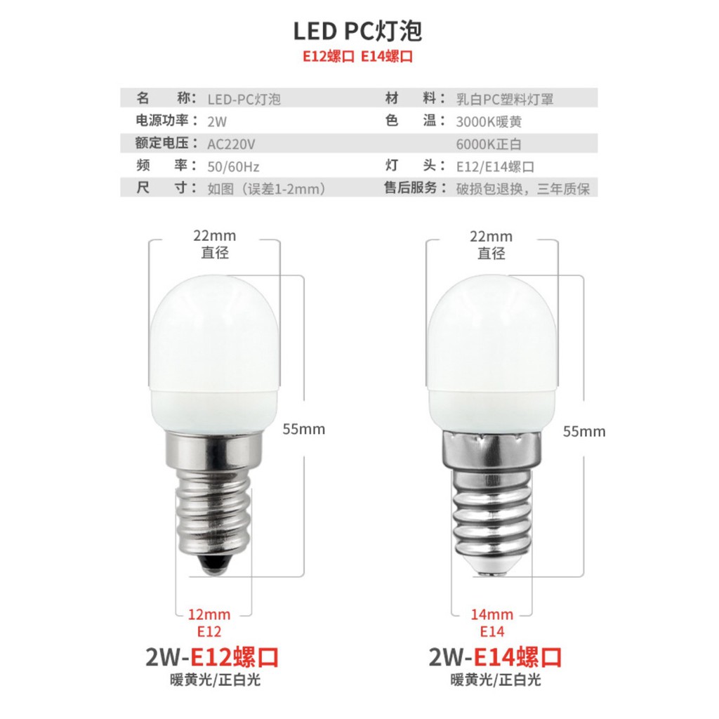 LED E14 2W หลอดไฟตู้เย็น ขั้ว E14 ไฟบ้าน 220V แสงขาว/วอร์ม พอร์ตสกรูขนาดเล็ก ไฟ LED, หลอดประหยัดไฟ ไฟจักรเย็บผ้า ไฟระย้า