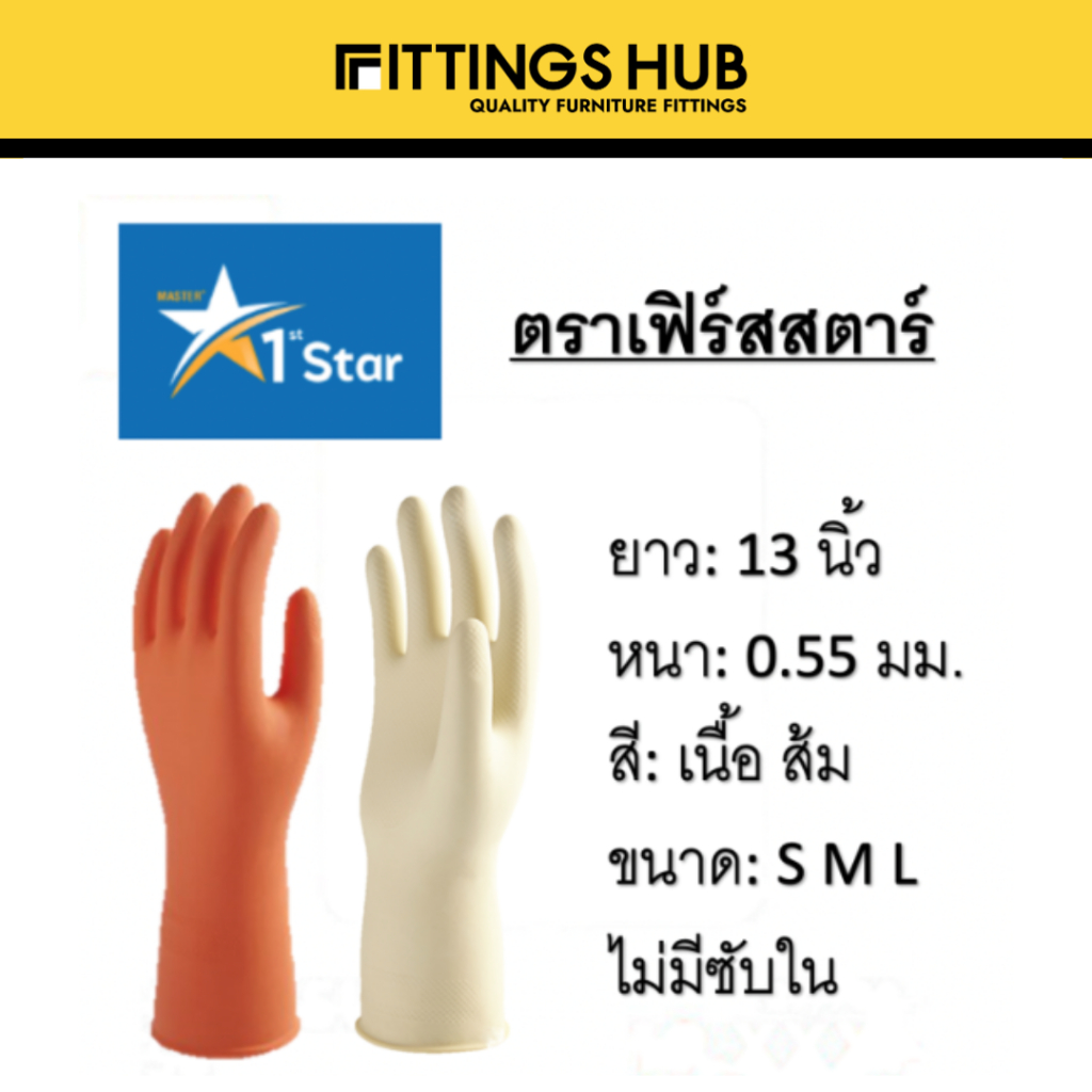 ถุงมือยางทำความสะอาด ถุงมือแม่บ้าน กำมะหยี่ด้านใน(กระทิง) กลิ่นมะนาว ยางธรรมชาติ สีส้ม/ดำ S/M/L