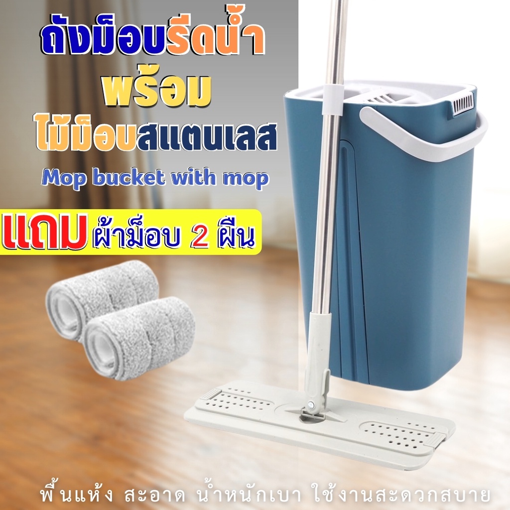 ถังปั่นถูพื้น Spin Mop ถังปั่นถูพื้น ไม้ม๊อบถูพื้นพร้อมถังปั่น ไม้ม็อบ ชุดถังถูพื้นแบบถังเดี่ยวแยกน้ำเสีย