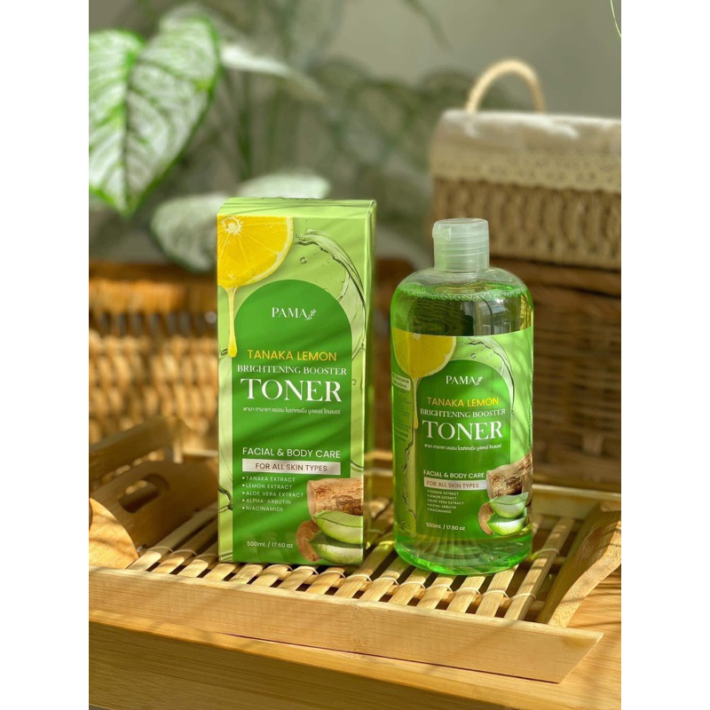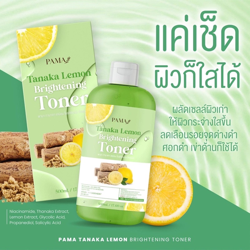โทนเนอร ์เช็ดผิวขาวพม่า(แพ็คเกจใหม่) PAMA สูตรเลม่อนผสมทานาคา เช็ดได้ทั้งผิวกายเเละผิวหน้า เช็ดฝ้า ทุกคราบดำ