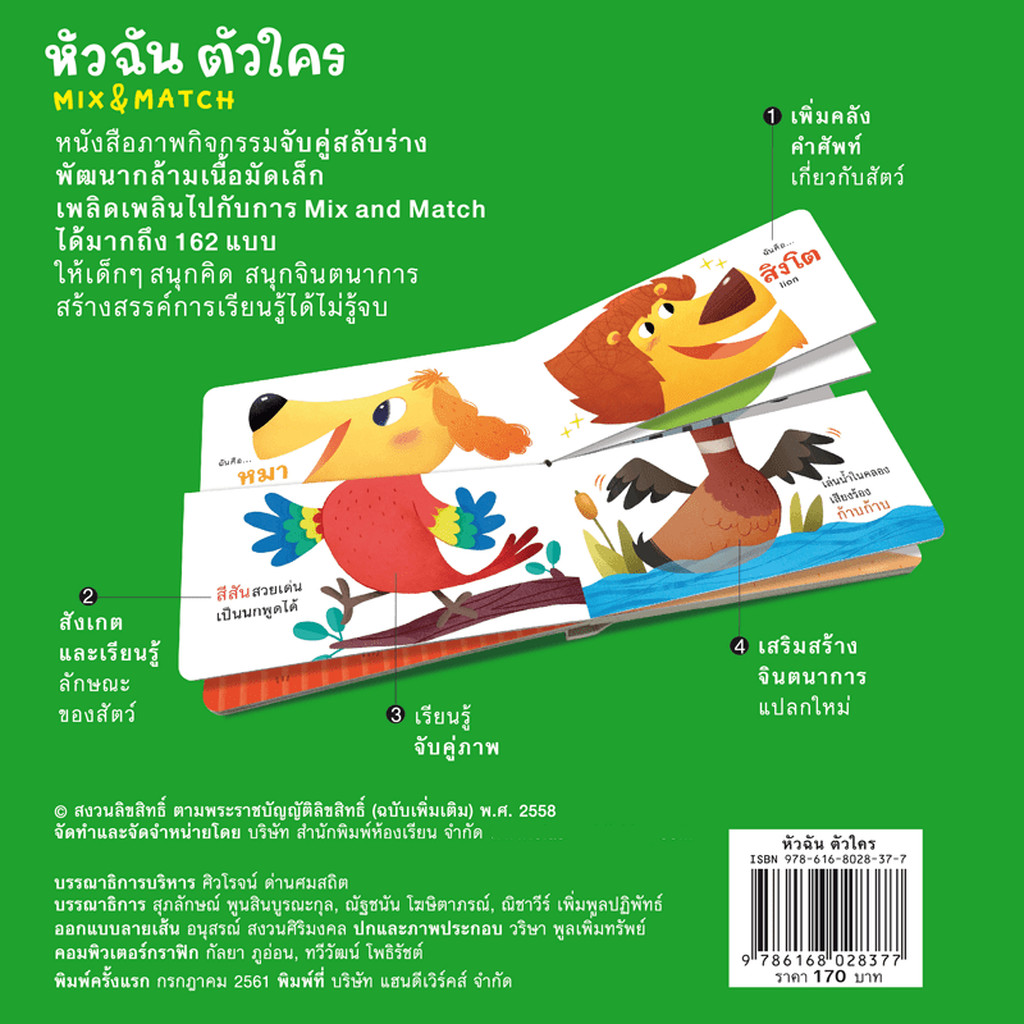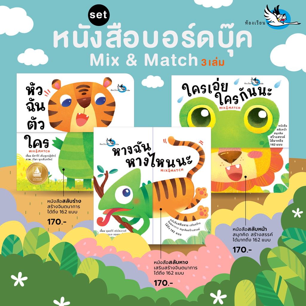 ห้องเรียน หนังสือบอร์ดบุ๊ค หัวฉันตัวใคร Boardbook Mix&Match พลิกหน้าสลับร่าง หนังสือรางวัล