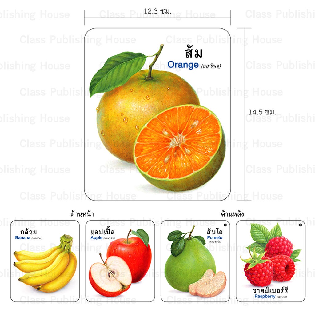 ห้องเรียน Flash Card บัตรภาพ บัตรคำศัพท์ ผลไม้ บรรจุบัตรภาพ 32 ใบ คำศัพท์ ภาษา ไทย - อังกฤษ