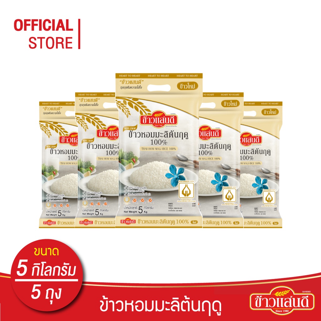 ข้าวแสนดี ข้าวหอมมะลิใหม่ต้นฤดู 100% 5 กก. จำนวน 5 ถุง ข้าวแห่งปีที่ดีที่สุด