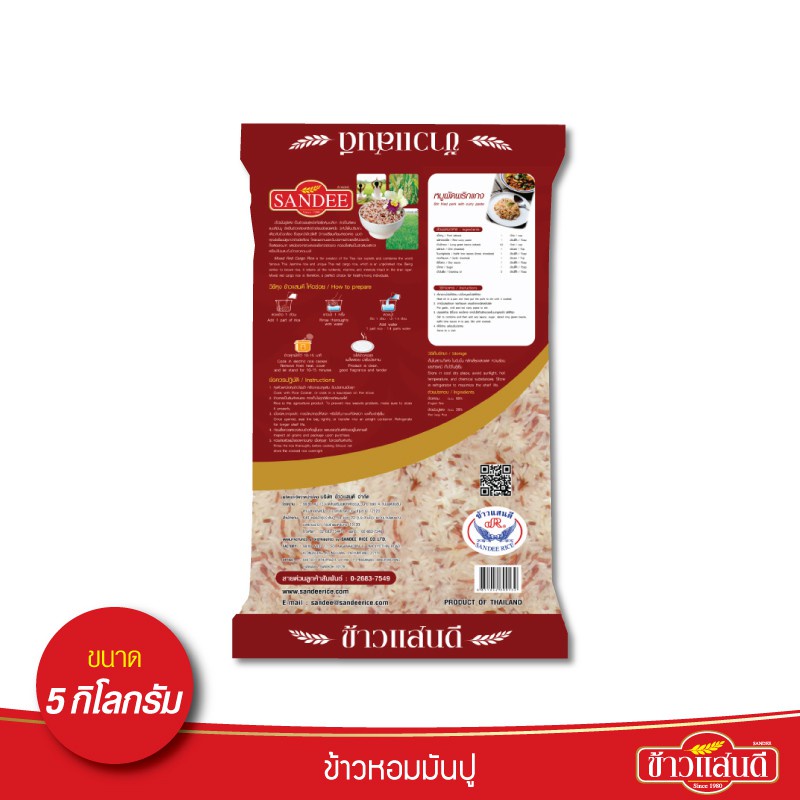 ข้าวแสนดี ข้าวหอมมันปู 5 กก. จำนวน 4 ถุง