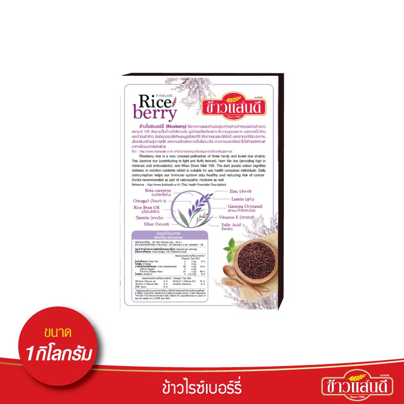 ข้าวแสนดี ข้าวไรซ์เบอร์รี่ 1 กก. จำนวน 1 กล่อง ข้าวเพื่อสุขภาพ