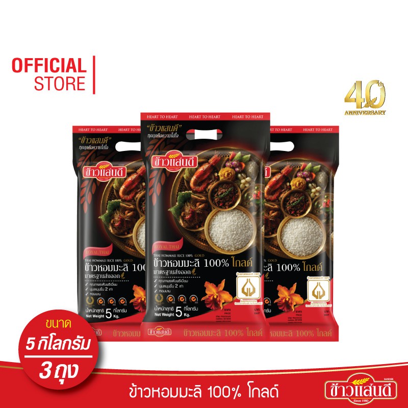 ข้าวแสนดี ข้าวหอมมะลิ 100% โกลด์ 5 กก. จำนวน 3 ถุง นุ่มละมุนขึ้น 2 เท่า