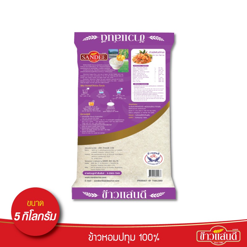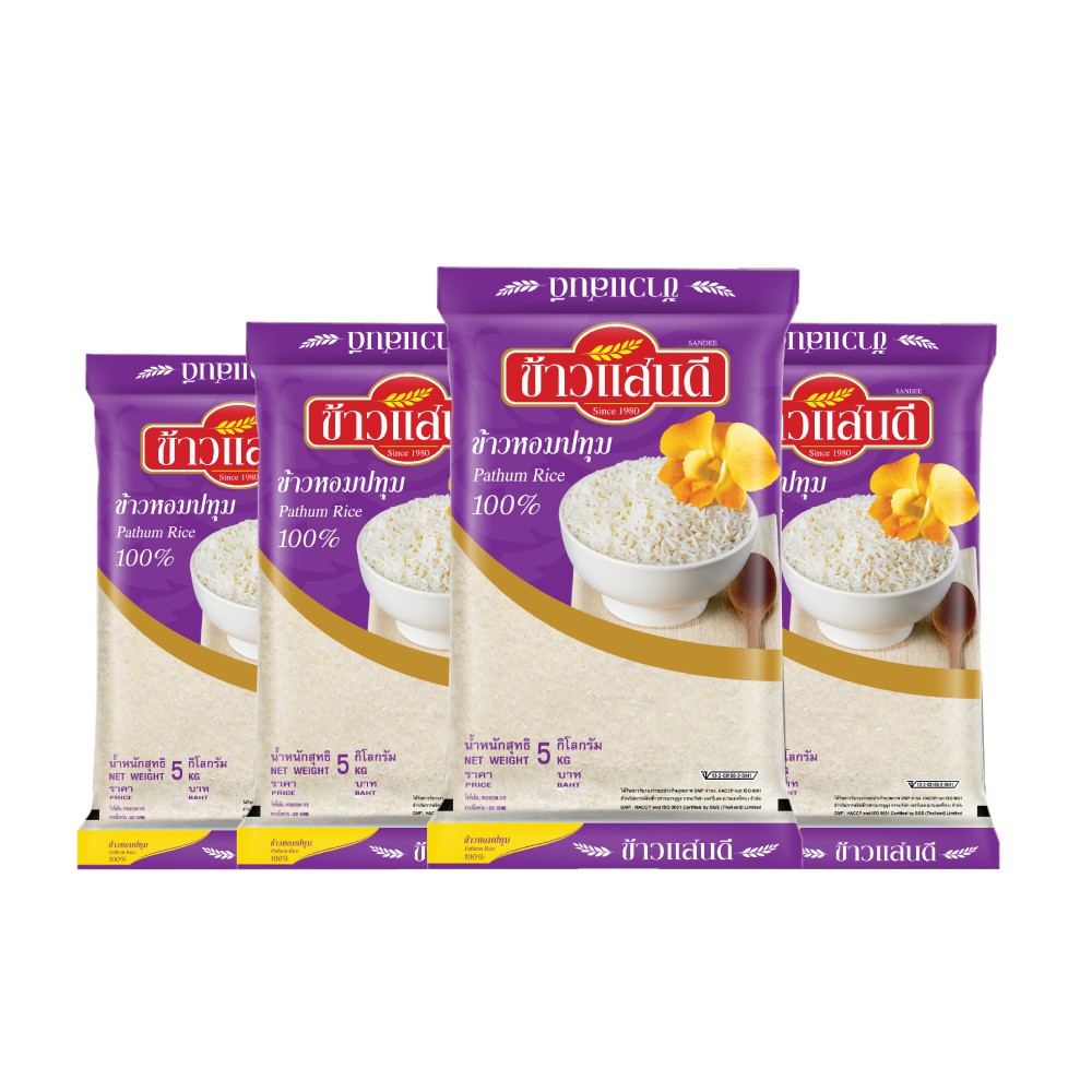 ข้าวแสนดี ข้าวหอมปทุม 100% 5 กก. จำนวน 4 ถุง Pathum Rice 100%