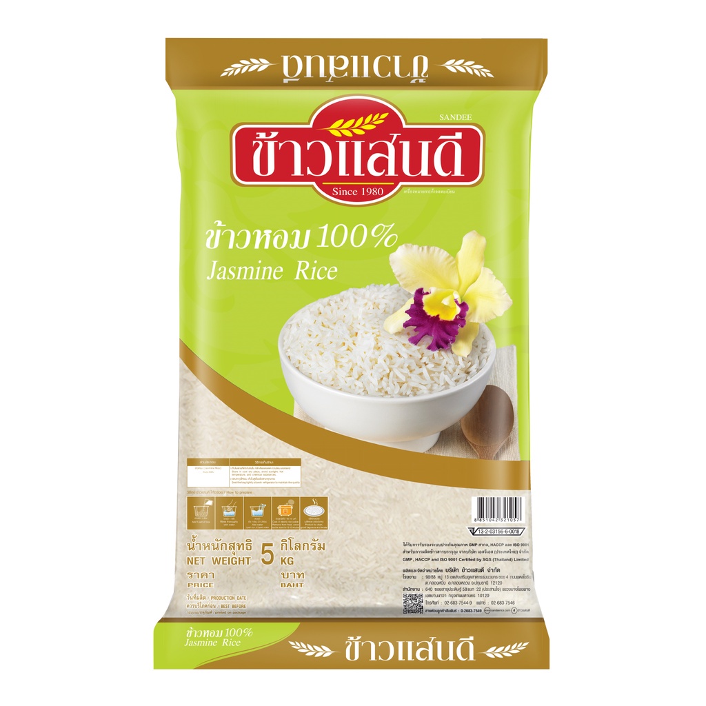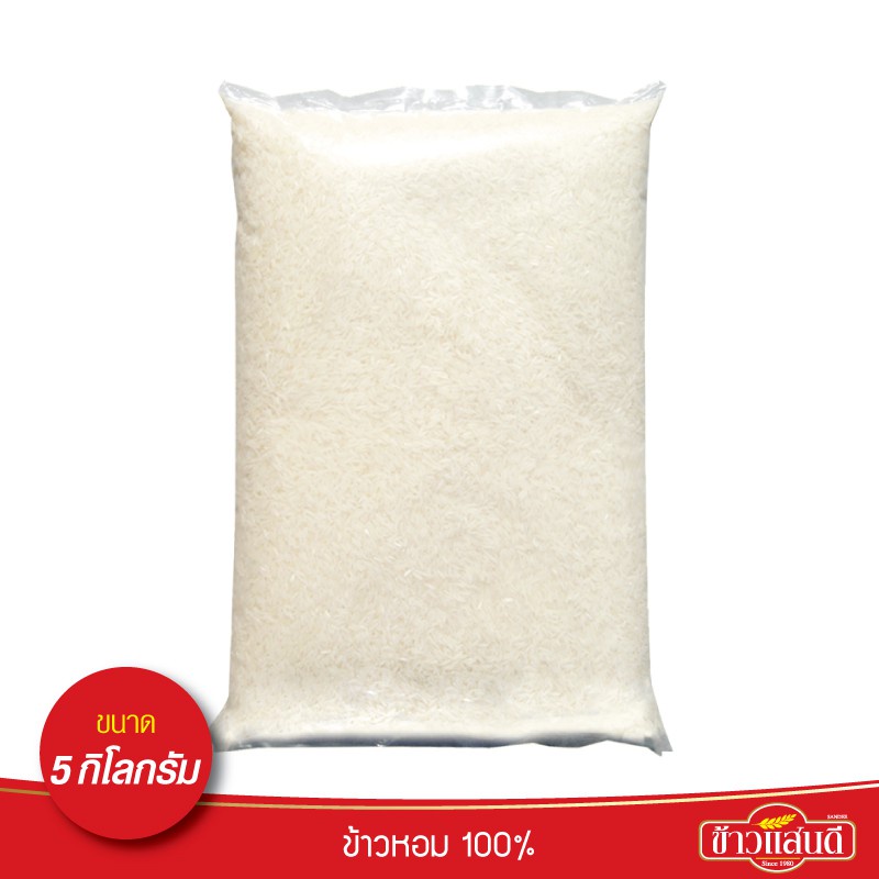 ข้าวแสนดี ข้าวหอม 100% (ถุงเขียว) 5 กก.จำนวน 4 ถุง Jasmine Rice 100%