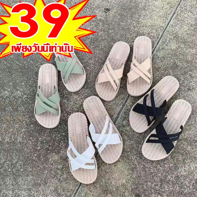 CC พร้อมส่งทันทีในไทย🎉รองเท้าแตะแฟชั่นสไตล์เกาหลี แบบสวมผู้หญิงพื้นนุ่ม สวมสบาย แนะนำเพิ่ม1ไซส์ รองเท้าแตะผู้หญิง