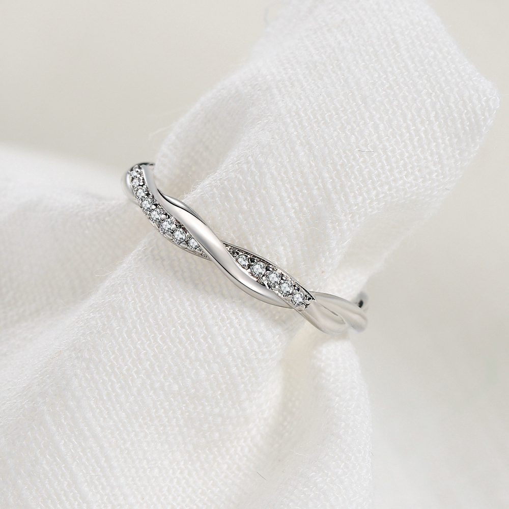 ZHOUYANG หมั้นแหวนแต่งงานสำหรับผู้หญิงบางอารมณ์ Winding สีเงินเพทายแฟชั่นของขวัญ DZR018 เครื่องประดับ