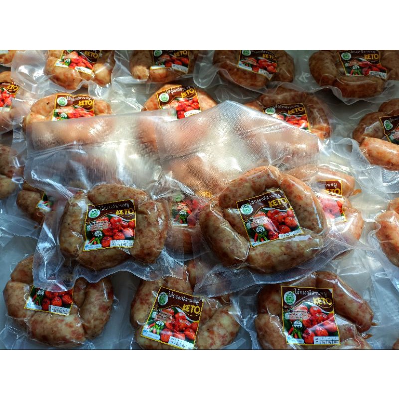 ไส้กรอกอีสานหมูคีโตแท้ 100%, ไส้กรอกเนื้อคีโต นน.250กรัม,ไส้กรอกอีสานอกไก่คลีน 250กรัม